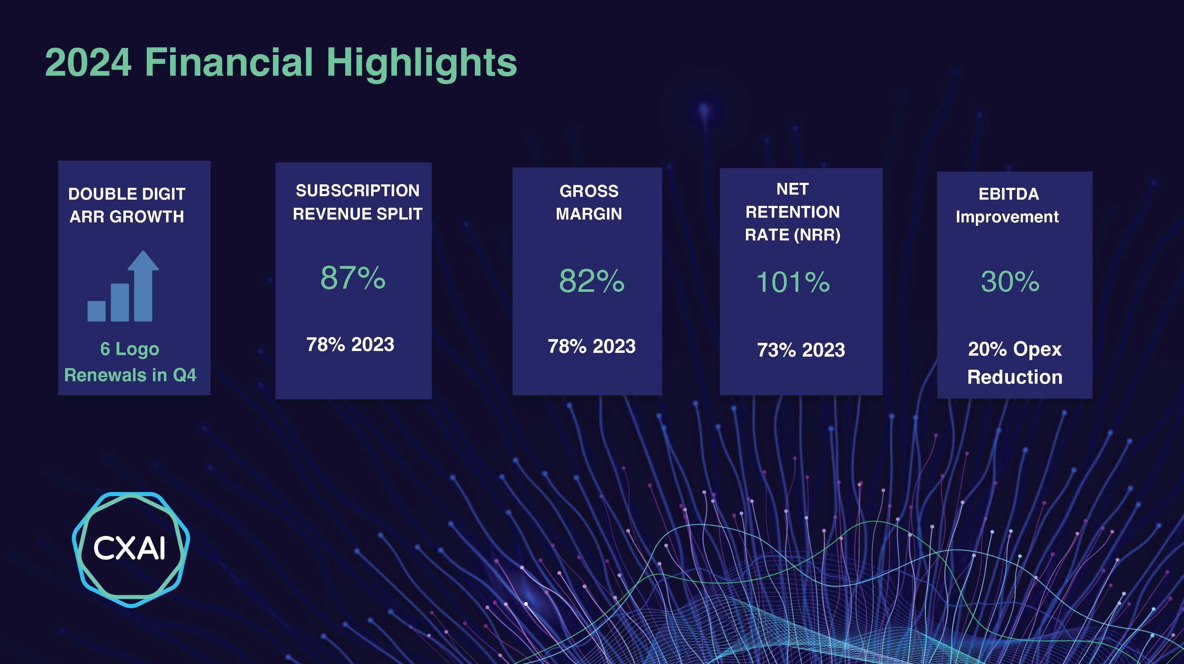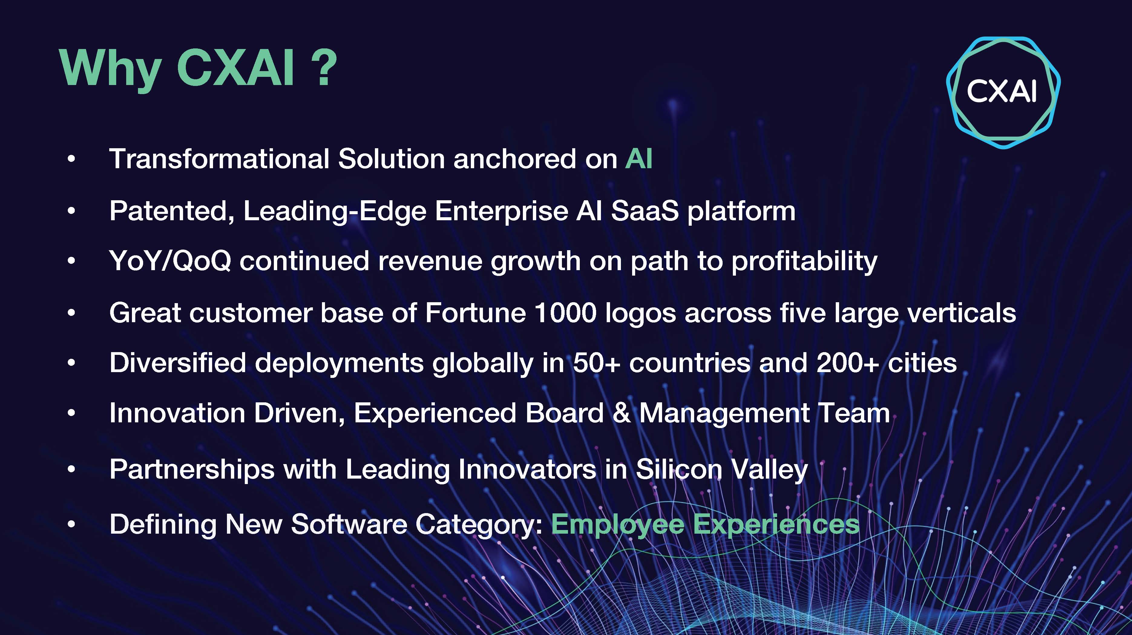 | ● | 前四半期、大手金融サービス企業において、新しいCXAI 2.0プラットフォームの最初の導入が完了しました。これには、CXAI App、CXAI BTS(ルールエンジンとコンテンツ管理システム)、CXAI VU(分析エンジン)の3つのCXAIプラットフォームが含まれます。) |