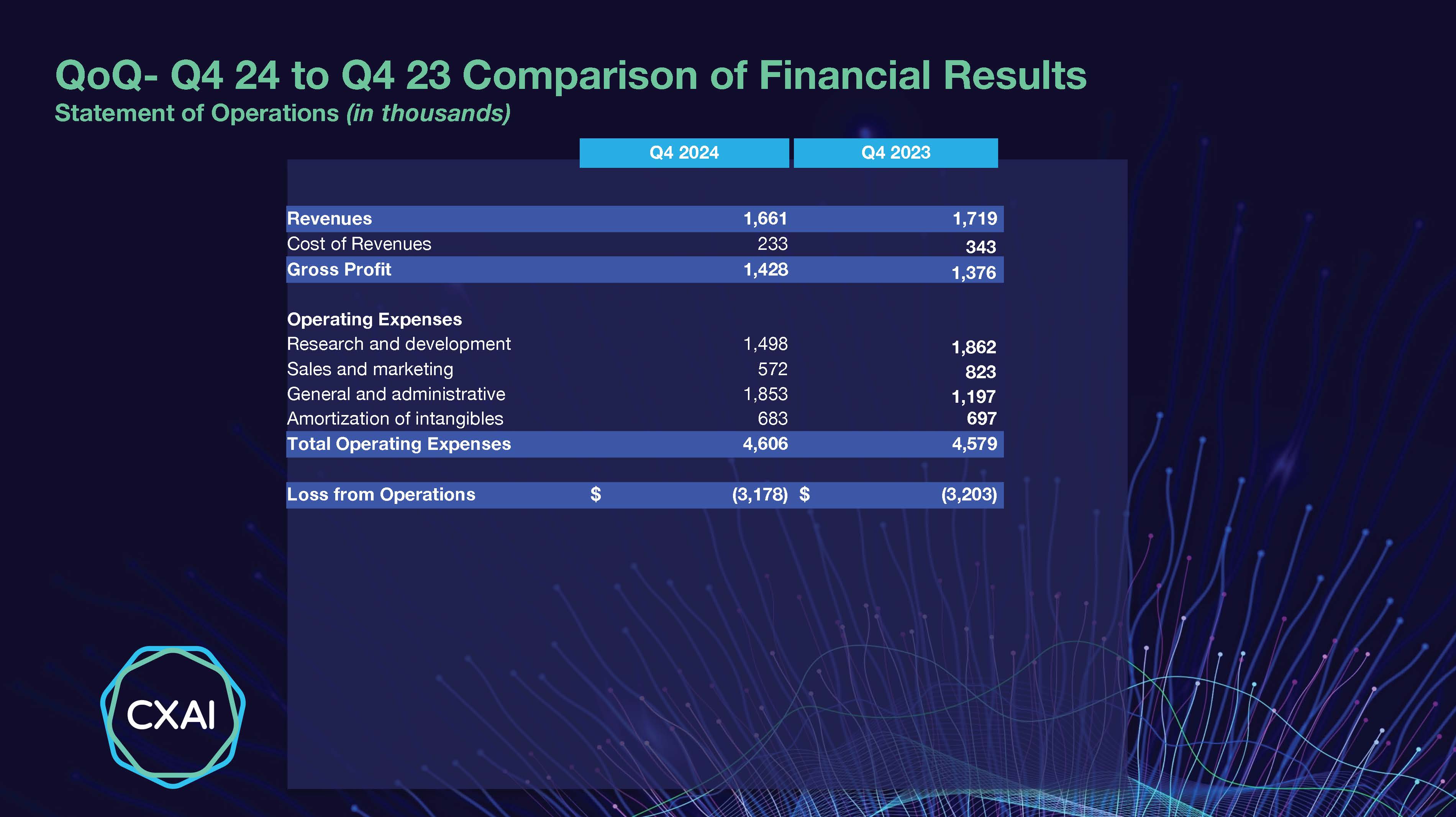 CXAppの最高財務責任者(CFO)であるジョイ・ムバンゴは、次のように述べています。「全体として、当社の財務指標は前年比で大きく改善しました。CXAppのジョイ・ムバンゴ最高財務責任者(CFO)は、次のように述べています。「当社の好調な業績は、サブスクリプション・ベース・モデルへの移行と、拡張性のある継続的な収益を通じて価値を創造することに注力したことの効果を実証しています。さらに、2025年に向けて、財務の安定性と成長イニシアチブのための資金調達能力を提供する資本へのアクセスを備えた強固なバランスシートを構築しています。