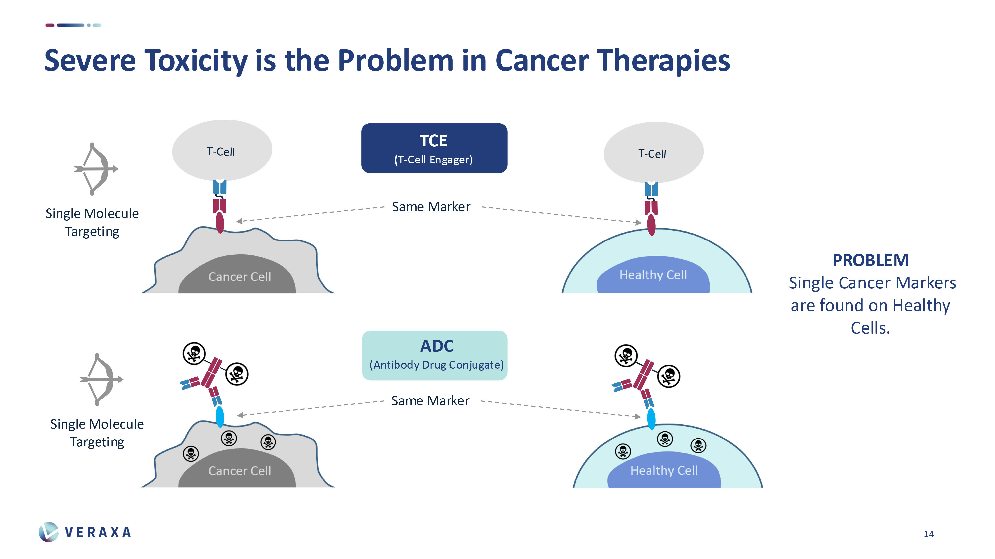 However, this same marker is often present on healthy cells (pause) … and this is leading to severe and sometimes fatal toxicities.
