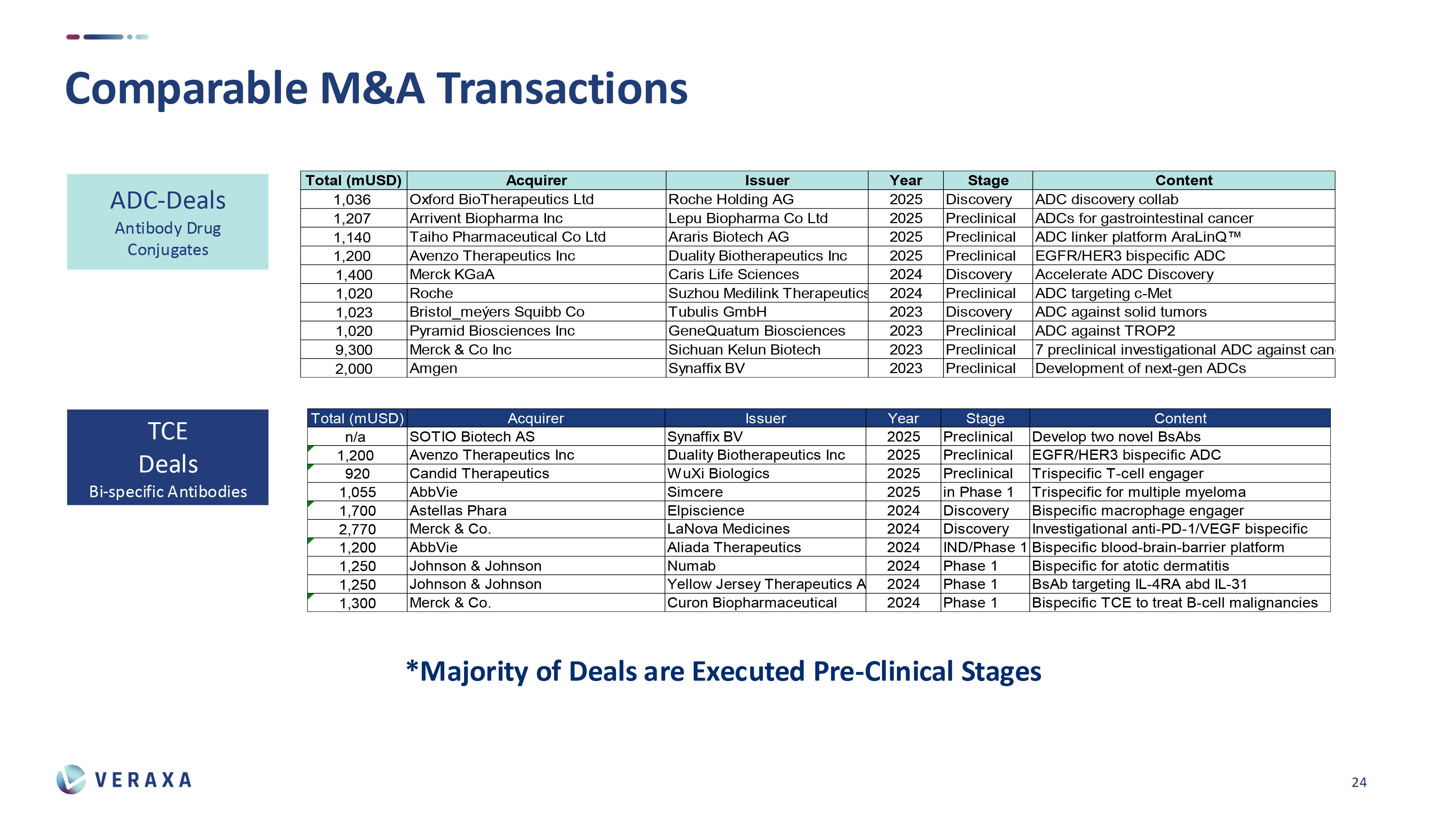To put VERAXA’s market potential into context, let’s take a look at recent M&A activities in the ADC and TCE space. The message is clear
