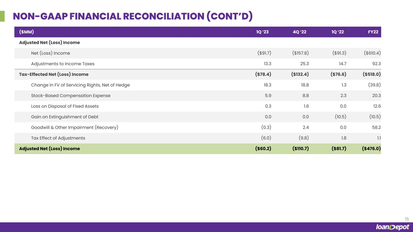 •Adjusted LBITDA for the first quarter of 2023 was $29.3 million as compared to adjusted LBITDA of $92.0 million for the fourth quarter of 2022. Adjusted (LBITDA) EBITDA excludes the impact of fair value changes of our mortgage servicing rights, net of hedging results, impairment charges, and other operating expenses.