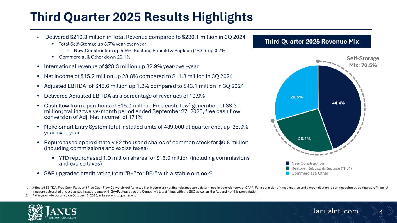 JANUS INTERNATIONAL GROUP REPORTS THIRD QUARTER 2025 FINANCIAL RESULTS
