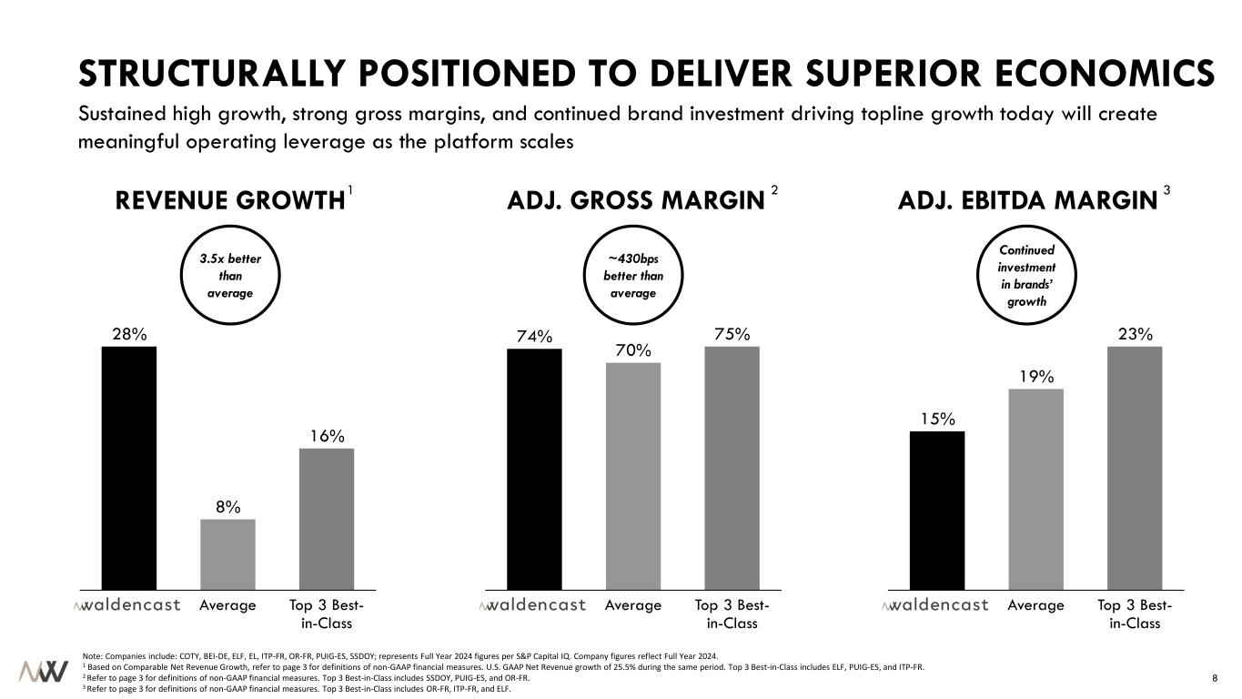 ALGORITHM FOR LONG-TERM SUCCESS Flywheel Effect Drive Gross Margin Through Operational Efficiency Acquire Structurally Attractive Indie Brands Leverage Superlative Gross Margin Profile Reinvest in High ROI Sales & Marketing Leverage G&A Built-to- Scale across Platform Best-in-Class Topline Growth Top-tier revenue growth and gross profit reinvested in efficient sales & marketing create the Waldencast flywheel effect 7