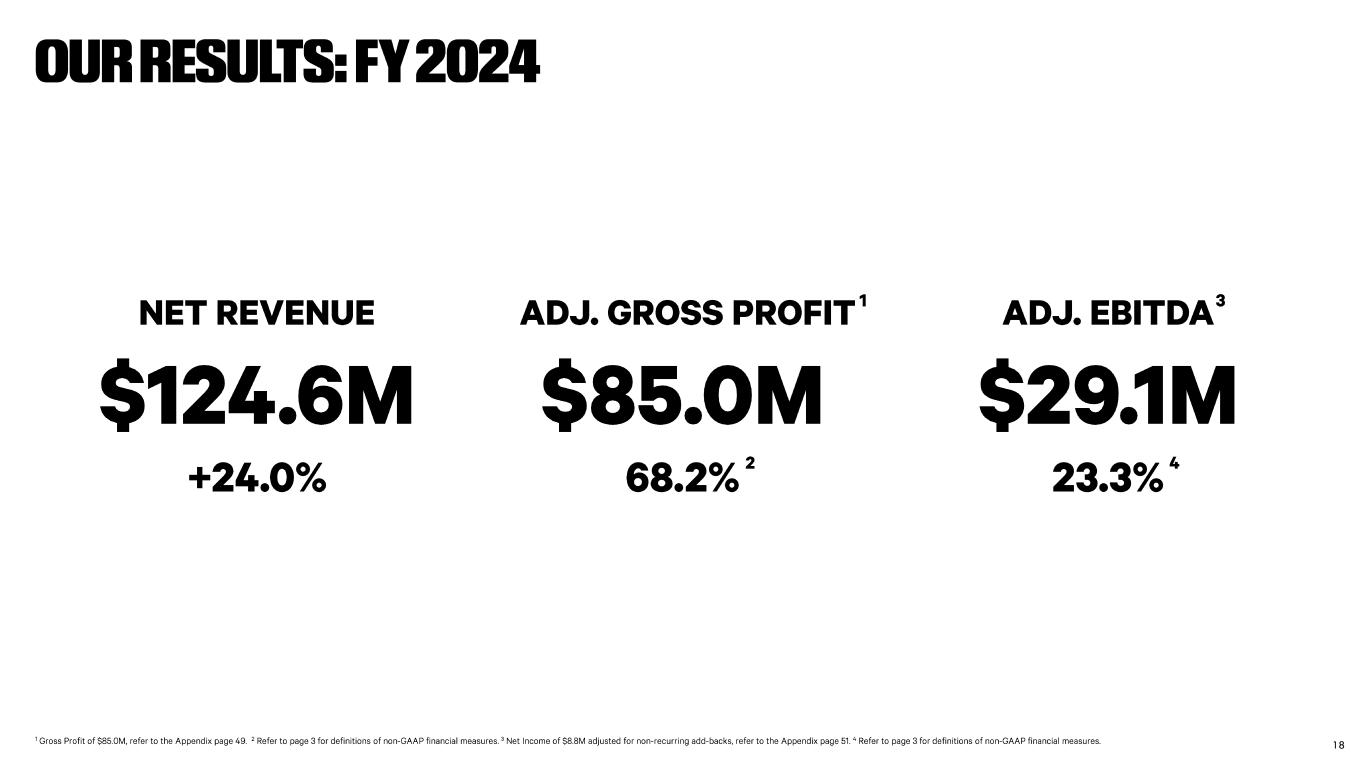 COMBINED FINANCIAL PROFILE: FY 2024 NET REVENUE $273.9M +27.5% 1 ADJ. GROSS PROFIT $203.6M 2 74.3% 3 ADJ. EBITDA $40.3M 14.7% 5 4 COMPARABLE GROWTH 1 Based on Comparable Net Revenue Growth, refer to page 3 for definitions of non-GAAP financial measures. U.S. GAAP Net Revenue growth of 25.5% during the same period. 2 Gross Profit of $191.7M adjusted for reconciling items, refer to the Appendix page 48. 3 Refer to page 3 for definitions of non-GAAP financial measures. 4Net Loss of $48.6M adjusted for non-recurring add-backs, refer to the Appendix page 50. 5 Refer to page 3 for definitions of non-GAAP financial measures. 11