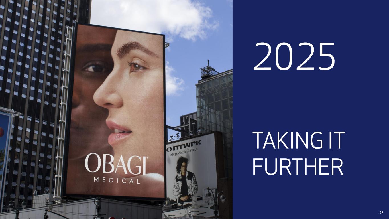 DISCLAIMER Cautionary Statement Regarding Forward-Looking Statements All statements in this release that are not historical, are forward-looking statements made pursuant to the safe harbor provisions of the Private Securities Litigation Reform Act of 1995. Such statements include, but are not limited to, statements about: Waldencast’s outlook and guidance for 2025; our ability to deliver financial results in line with expectations; expectations regarding sales, earnings or other future financial performance and liquidity or other performance measures; our long-term strategy and future operations or operating results; expectations with respect to our industry and the markets in which it operates; future product introductions; developments relating to the ongoing investigation and legal proceedings; and any assumptions underlying any of the foregoing. Words such as “anticipate,” “believe,” “continue,” “could,” “estimate,” “expect,” “intend,” “may,” “plan,” “predict,” “project,” “should,” and “will” and variations of such words and similar expressions are intended to identify such forward-looking statements. These forward-looking statements are not guarantees of future performance, conditions or results, and involve a number of known and unknown risks, uncertainties, assumptions and other important factors, many of which are outside of our control, that could cause actual results or outcomes to differ materially from those discussed in the forward-looking statements, including, among others: (i) the impact of the material weaknesses in our internal control over financial reporting, including associated investigations, our efforts to remediate such material weakness and the timing of remediation and resolution of associated investigations; (ii) our ability to recognize the anticipated benefits from any acquired business, including the Business Combination; (iii) our ability to successfully implement our management’s plans and strategies; (iv) the overall economic and market conditions, sales forecasts and other information about our possible or assumed future results of operations or our performance; (v) the general impact of geopolitical events, including the impact of current wars, conflicts or other hostilities; (vi) the potential for delisting, legal proceedings or existing or new government investigation or enforcement actions, including those relating to the restatement or the subject of the Audit Committee of our Board of Directors’ review further described in our annual report filed on Form 20-F for the year ended December 31, 2022, (vii) our ability to manage expenses, our liquidity and our investments in working capital; (viii) any failure to obtain governmental and regulatory approvals related to our business and products; (ix) the impact of any international trade or foreign exchange restrictions, increased tariffs, foreign currency exchange fluctuations; (x) our ability to raise additional capital or complete desired acquisitions; (xi) our ability to comply with financial covenants imposed by the new 2025 credit agreement we entered into referenced in the section entitled "New Credit Facility" above and the impact of debt service obligations and restricted debt covenants; (xii) volatility of Waldencast’s securities due to a variety of factors, including Waldencast’s inability to implement its business plans or meet or exceed its financial projections and changes; (xiii) the ability to implement business plans, forecasts, and other expectations, and identify and realize additional opportunities; (xiv) the ability of Waldencast to implement its strategic initiatives and continue to innovate Obagi Medical’s and Milk Makeup’s existing products and anticipate and respond to market trends and changes in consumer preferences, (xv) any shifts in the preferences of consumers as to where and how they shop; (xvi) the impact of any unfavorable publicity on our business or products; (xvii) changes in future exchange or interest rates or credit ratings; (xviii) changes in, and uncertainty with respect to, laws, regulations, and policies, including as a result of the change in the U.S. administration; and (xix) social, political and economic conditions. These and other risks, assumptions and uncertainties are more fully described in the Risk Factors section of our 2023 20-F (File No. 01-40207), filed with the SEC on April 30, 2024, and in our other documents that we file or furnish with the SEC, which you are encouraged to read. Should one or more of these risks or uncertainties materialize, or should underlying assumptions prove incorrect, actual results may vary materially from those indicated or anticipated by such forward-looking statements. Accordingly, you are cautioned not to rely on these forward- looking statements, which speak only as of the date they are made. Waldencast expressly disclaims any current intention, and assumes no duty, to update publicly any forward-looking statement after the distribution of this release, whether as a result of new information, future events, changes in assumptions or otherwise. Non-GAAP Financial Measures In addition to the financial measures presented in this release in accordance with U.S. GAAP, Waldencast separately reports financial results on the basis of the measures set out and defined below which are non-GAAP financial measures. Waldencast believes the non-GAAP measures used in this release provide useful information to management and investors regarding certain financial and business trends relating to its financial condition and results of operations. Waldencast believes that the use of these non-GAAP financial measures provides an additional tool for investors to use in evaluating ongoing operating results and trends. These non-GAAP measures also provide perspective on how Waldencast’s management evaluates and monitors the performance of the business. There are limitation