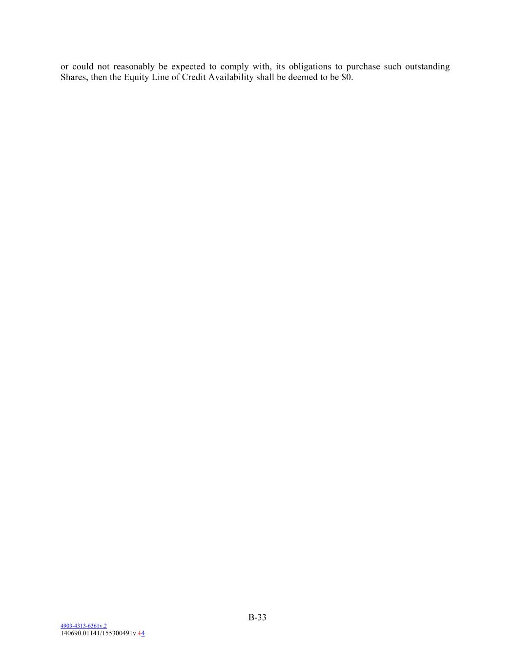 or could not reasonably be expected to comply with, its obligations to purchase such outstanding Shares, then the Equity Line of Credit Availability shall be deemed to be $0. B-33 4903-4313-6361v.2 140690.01141/155300491v.14