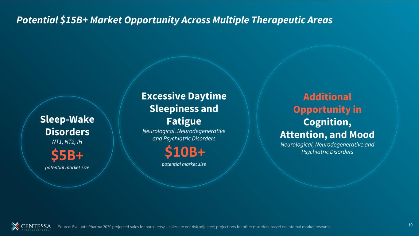 Broad and Rapidly Advancing OX2R Pipeline Centessa also has multiple early-stage assets including the LockBody® Technology Platform. ASSET DISEASE/CONDITION MECHANISM PRE-CLINICAL PHASE 1 PHASE 2 ORX750 Narcolepsy Type 1 (NT1) OXR2 Agonist ORX750 Narcolepsy Type 2 (NT2) OXR2 Agonist ORX750 Idiopathic Hypersomnia (IH) OXR2 Agonist ORX142 Neurological, Neurodegenerative & Psychiatric Disorders OXR2 Agonist ORX489 Neurological, Neurodegenerative & Psychiatric Disorders OXR2 Agonist Undisclosed Assets Undisclosed Orexin Pathway 9