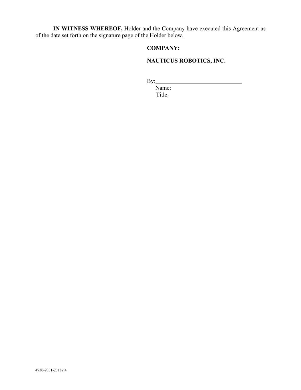 4937-6337-7752v.6 IN WITNESS WHEREOF, the Company has caused this Certificate of Designations of the Certificate of Incorporation of Nauticus Robotics, Inc. to be signed by its Chief Executive Officer and President on this __ day of December, 2025. NAUTICUS ROBOTICS, INC. By: _______________________ Name: John W. Gibson, Jr. Title: Chief Executive Officer and President