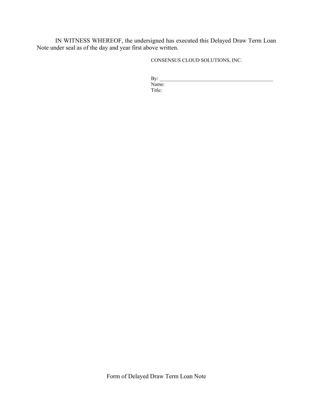 Form of Delayed Draw Term Loan Note IN WITNESS WHEREOF, the undersigned has executed this Delayed Draw Term Loan Note under seal as of the day and year first above written. CONSENSUS CLOUD SOLUTIONS, INC. By: ____________________________________________ Name: Title: