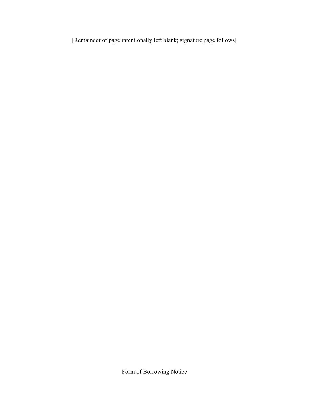 Form of Borrowing Notice [Remainder of page intentionally left blank; signature page follows]