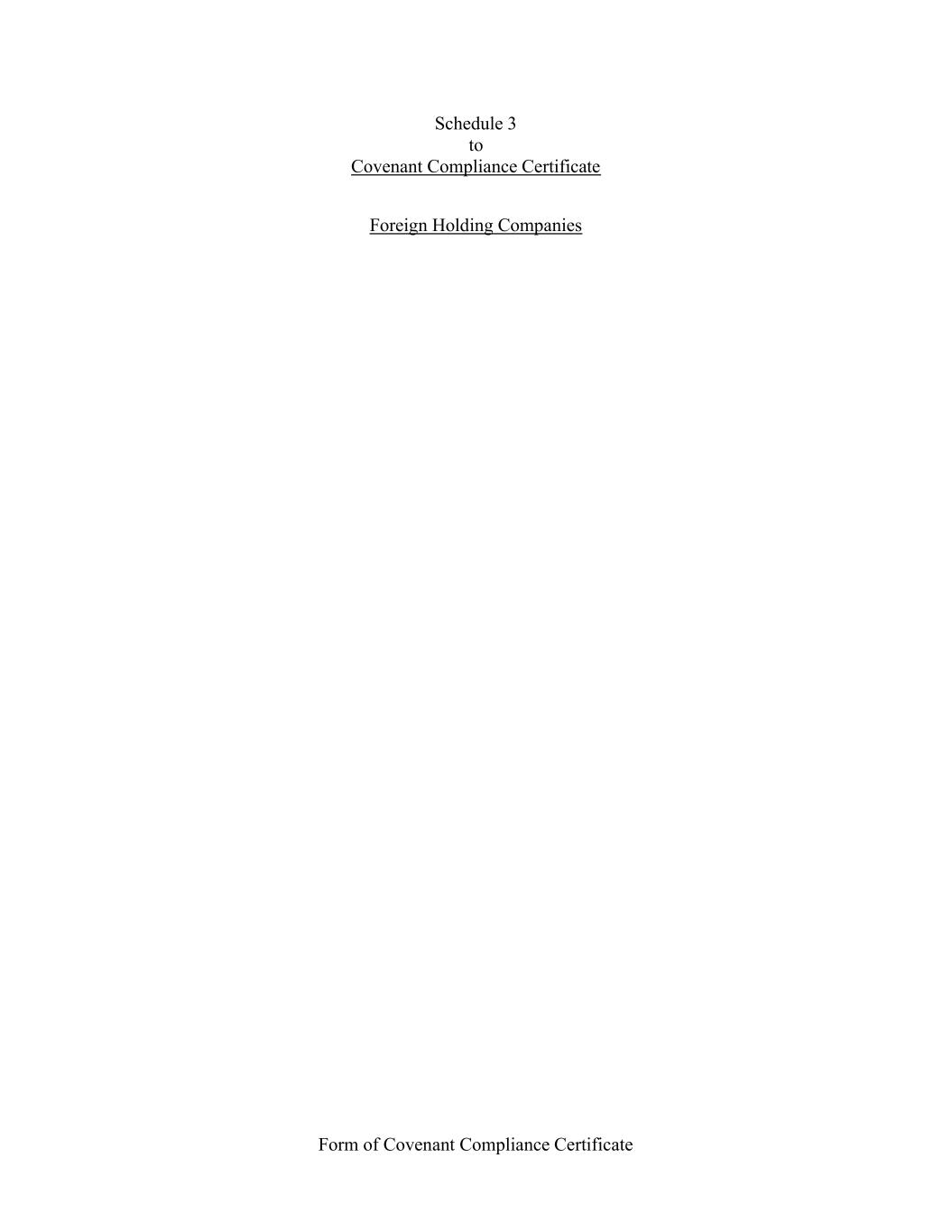 Form of Covenant Compliance Certificate Schedule 3 to Covenant Compliance Certificate Foreign Holding Companies
