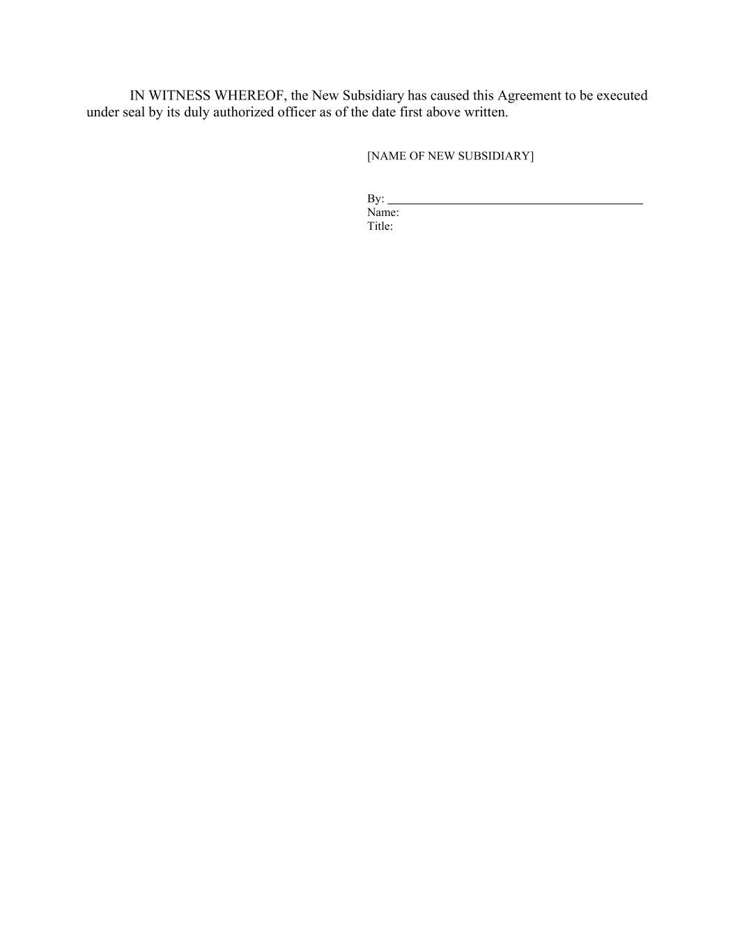 IN WITNESS WHEREOF, the New Subsidiary has caused this Agreement to be executed under seal by its duly authorized officer as of the date first above written. [NAME OF NEW SUBSIDIARY] By: Name: Title:
