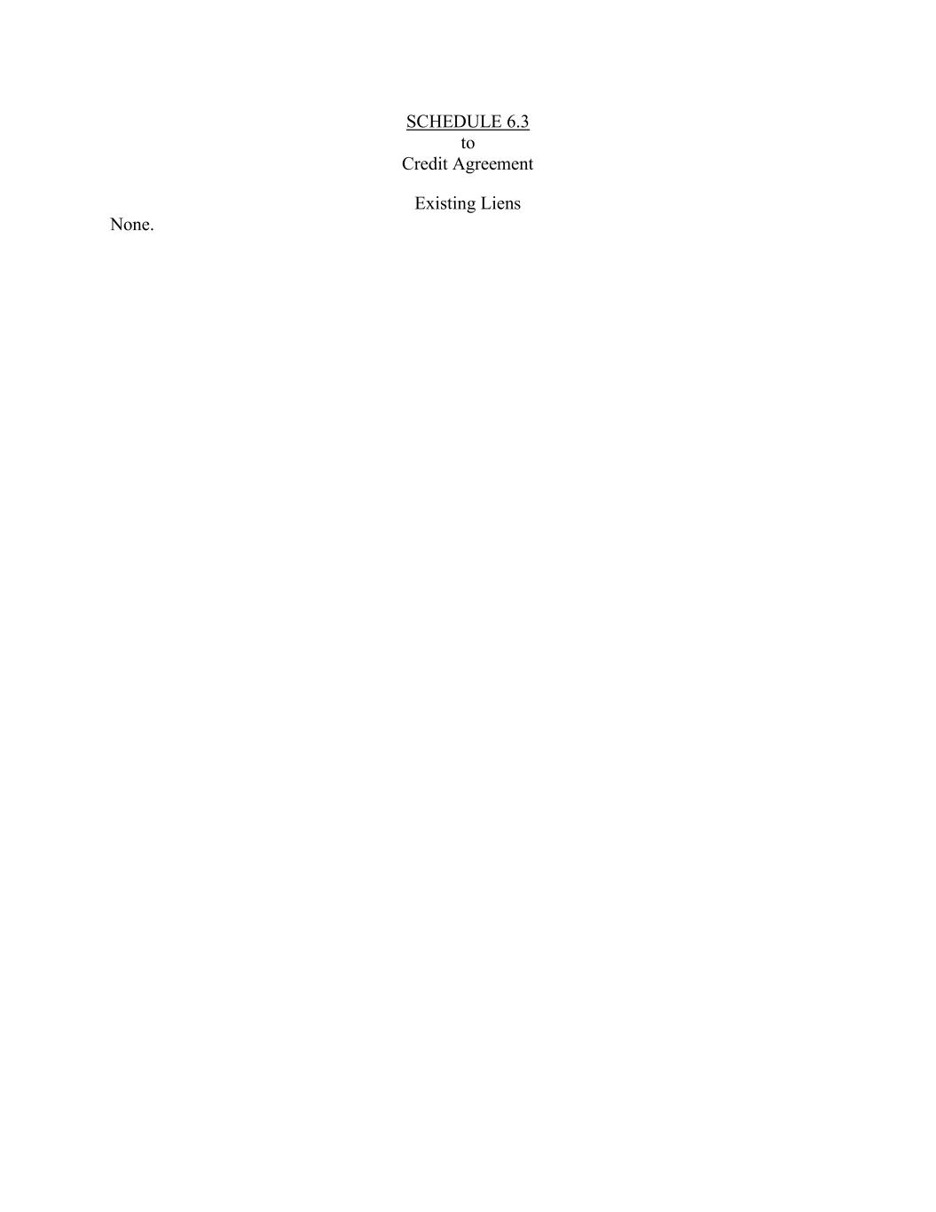 SCHEDULE 6.3 to Credit Agreement Existing Liens None.