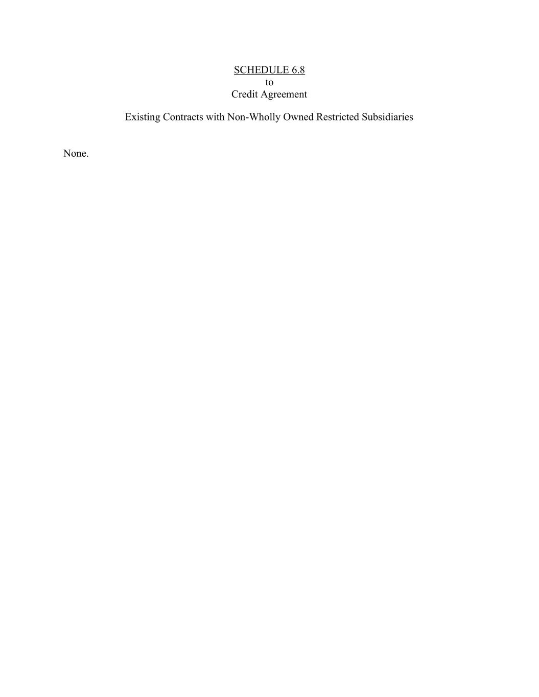 SCHEDULE 6.8 to Credit Agreement Existing Contracts with Non-Wholly Owned Restricted Subsidiaries None.