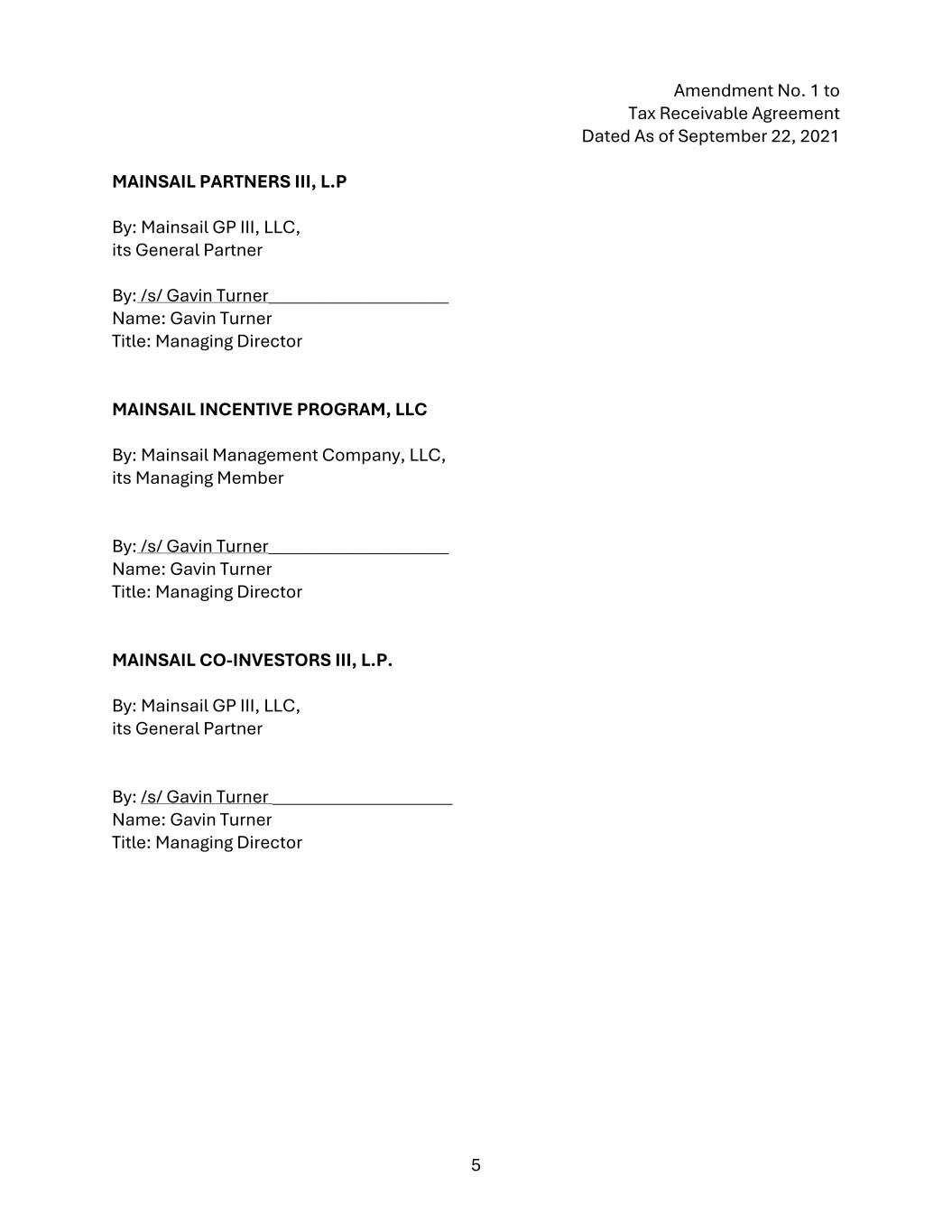 Amendment No. 1 to Tax Receivable Agreement Dated As of September 22, 2021 5 MAINSAIL PARTNERS III, L.P By: Mainsail GP III, LLC, its General Partner By: /s/ Gavin Turner_____________________ Name: Gavin Turner Title: Managing Director MAINSAIL INCENTIVE PROGRAM, LLC By: Mainsail Management Company, LLC, its Managing Member By: /s/ Gavin Turner_____________________ Name: Gavin Turner Title: Managing Director MAINSAIL CO-INVESTORS III, L.P. By: Mainsail GP III, LLC, its General Partner By: /s/ Gavin Turner _____________________ Name: Gavin Turner Title: Managing Director