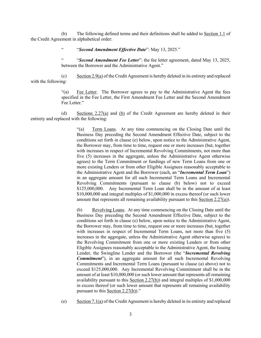 •“SVB Credit Agreement” refers to the credit agreement entered into on May 24, 2022, by Brilliant Earth, LLC, as borrower, and Silicon Valley Bank, as administrative agent and collateral agent for the lenders, which provides for a secured term loan credit facility of $65.0 million (the “SVB Term Loan”) and a secured revolving credit facility in an amount of up to $40.0 million (the “SVB Revolving Facility”, and together with the SVB Term Loan, the “SVB Credit Facilities”).