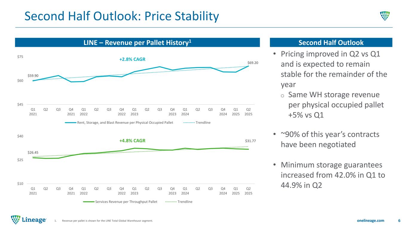 ミシガン州ノビ - 2025年8月6日 - 世界最大のグローバル定温倉庫REITであるリネージュ・インク(NASDAQ: LINE)(以下「当社」)は本日、2025年第2四半期の決算を発表しました。