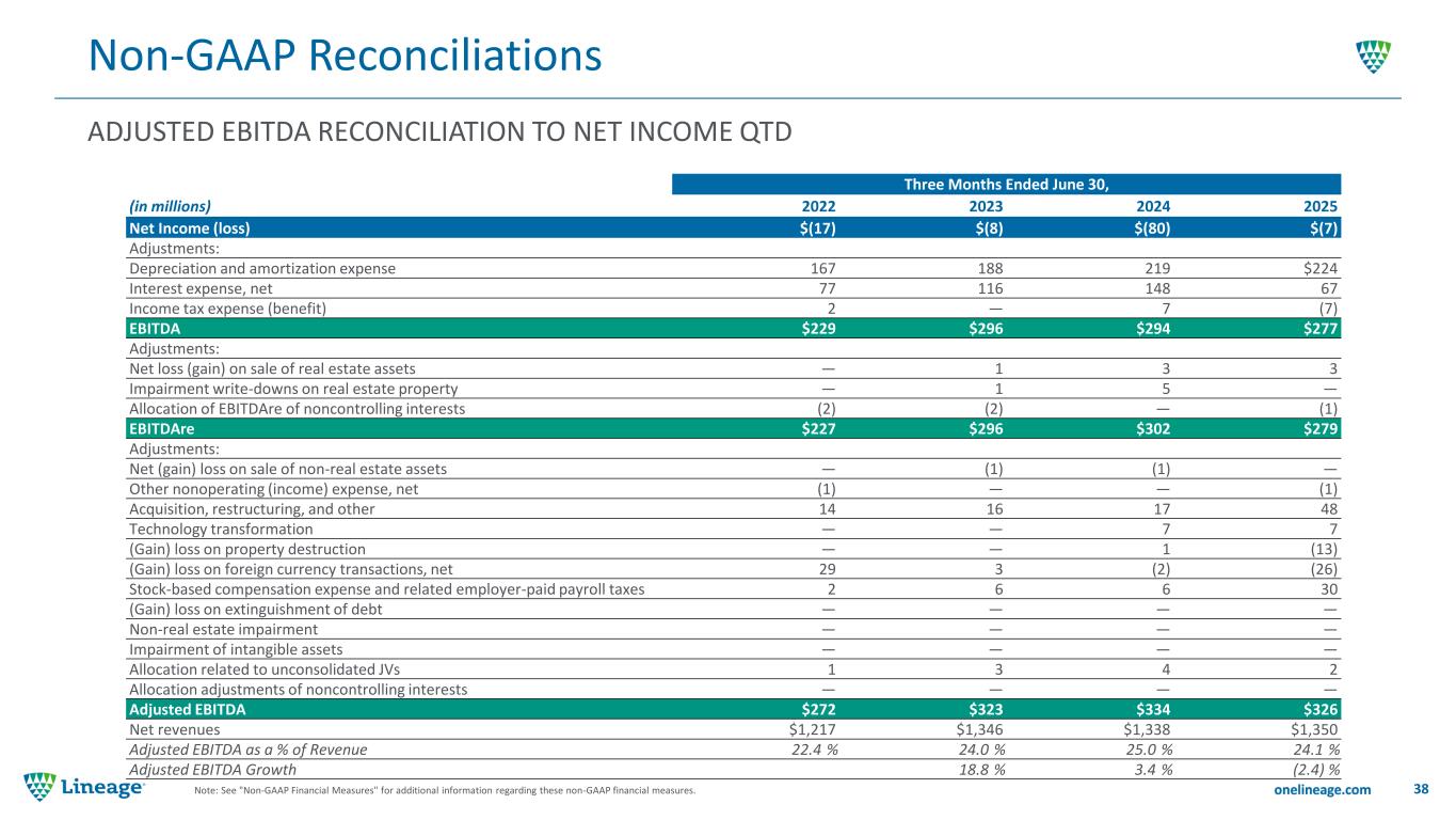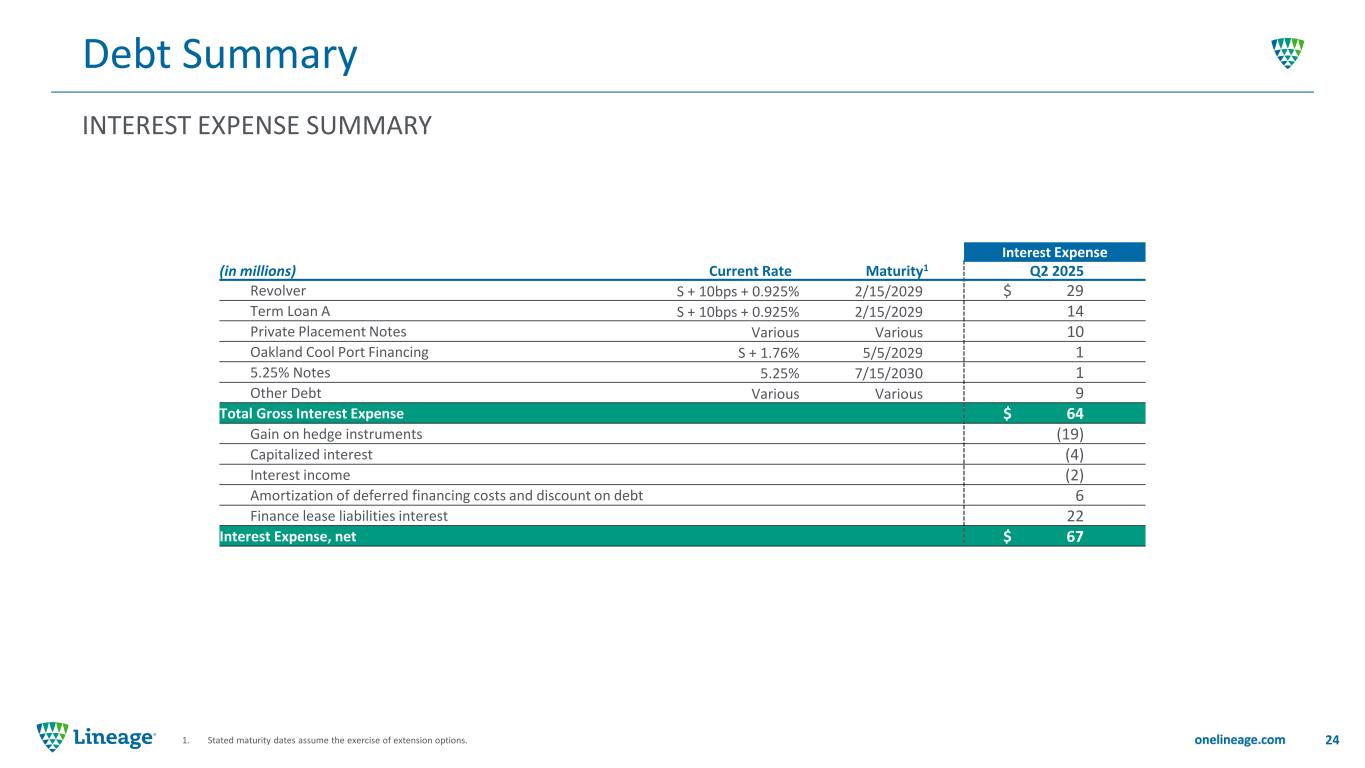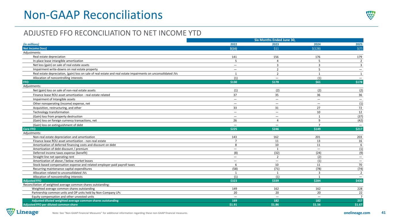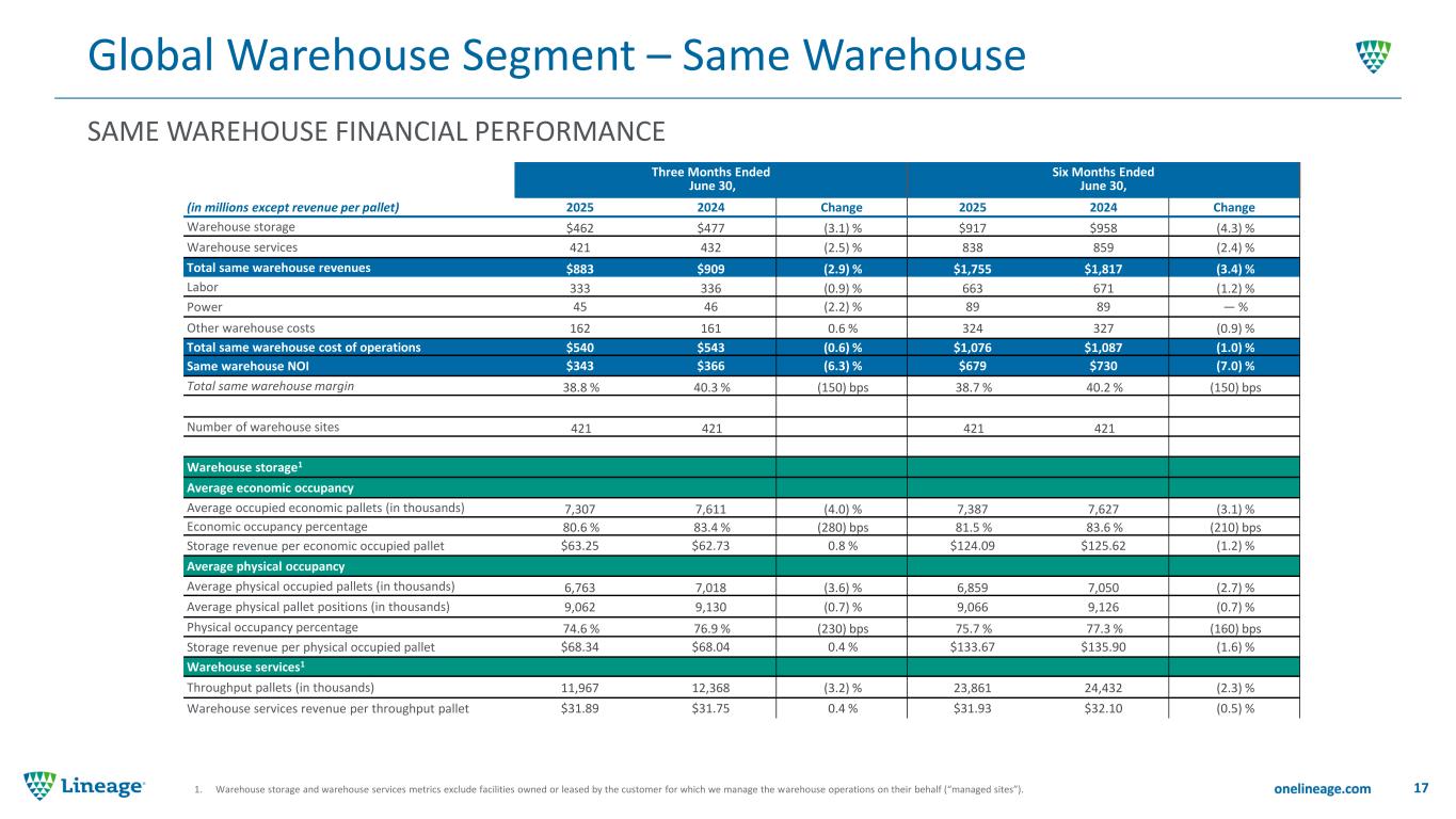 ir.onelineage.com/events-and-presentationsでリネージュの2025年第2四半期決算説明会および補足情報をご覧ください。
