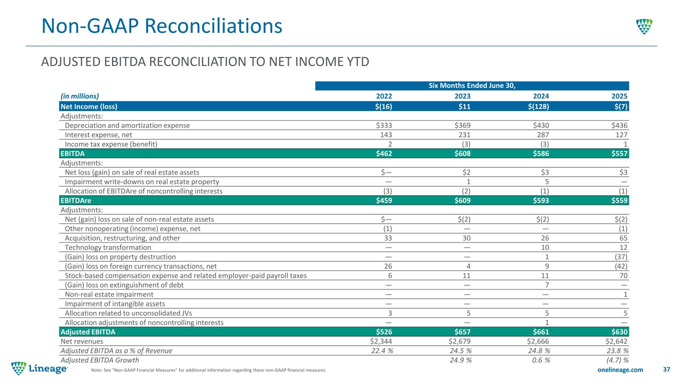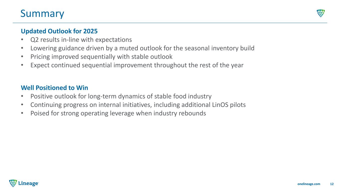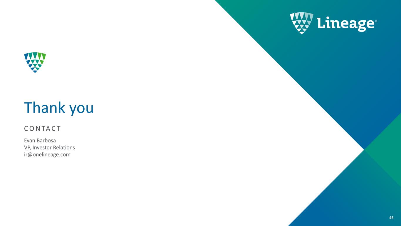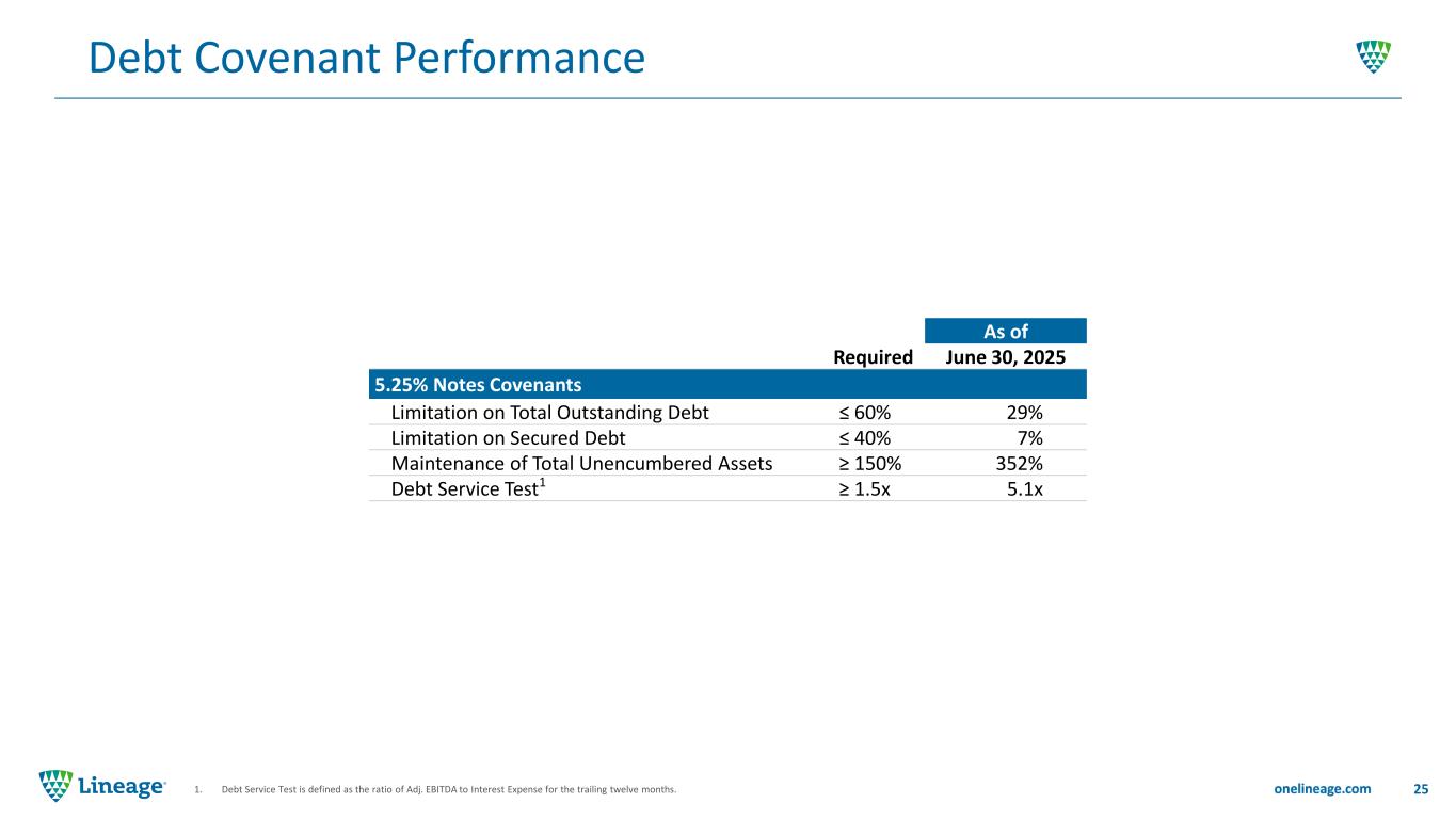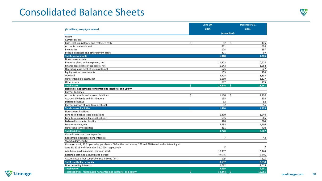 ir.onelineage.com/events-and-presentationsでリネージュの2025年第2四半期決算説明会および補足情報をご覧ください。