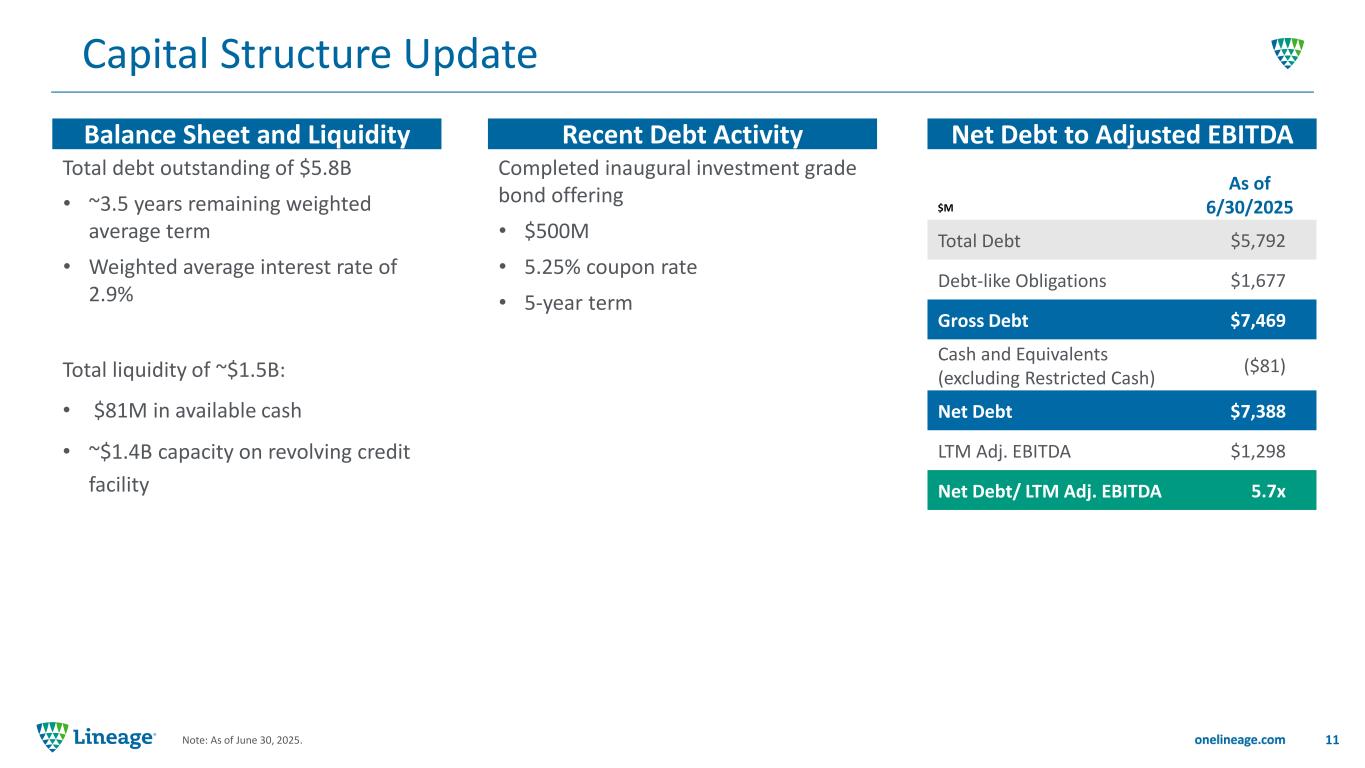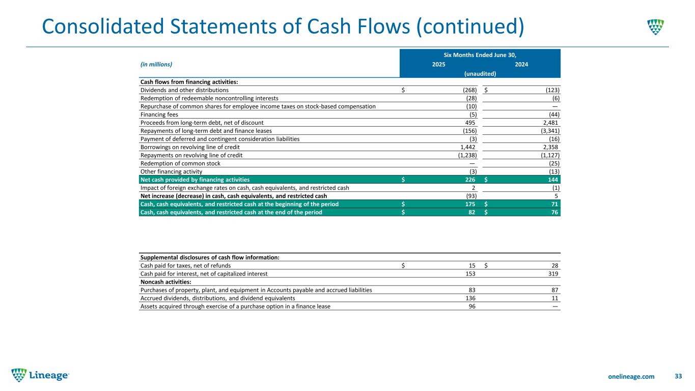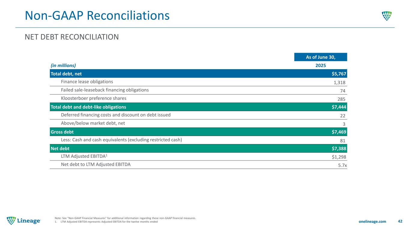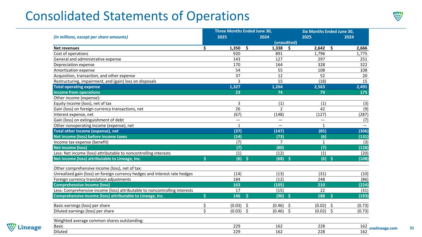 ir.onelineage.com/events-and-presentationsでリネージュの2025年第2四半期決算説明会および補足情報をご覧ください。
