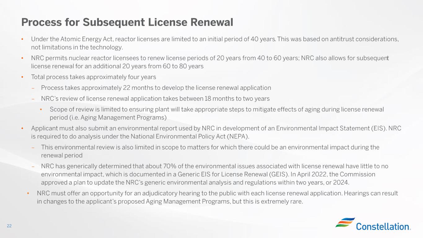 •Inflation Reduction Act signed into law, a recognition from Federal policymakers of the importance of nuclear energy in fighting the climate crisis