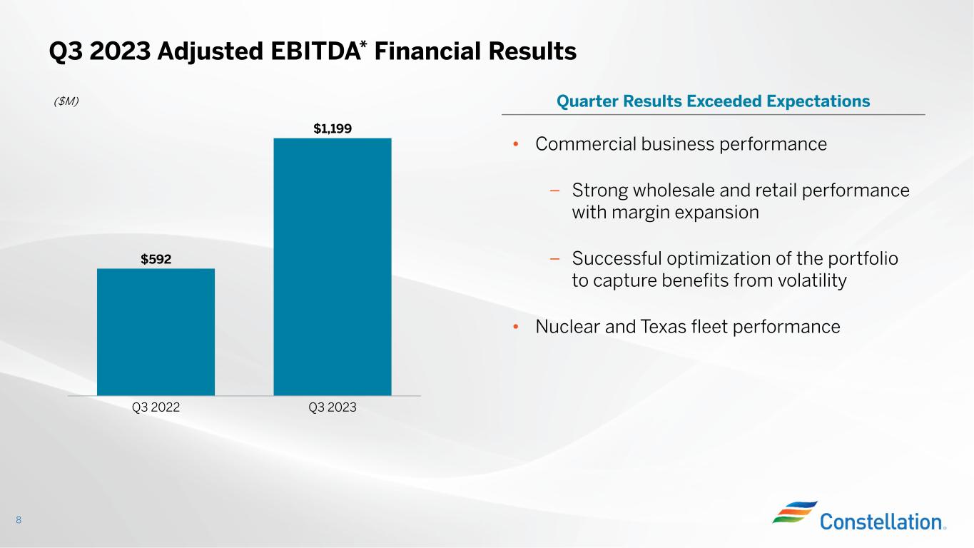 2023年度第3四半期の業績については、本日午前10時(米国東部時間)に予定している電話会議で説明する予定です。ウェブキャストと関連資料はhttps://investors.constellationenergy.com。