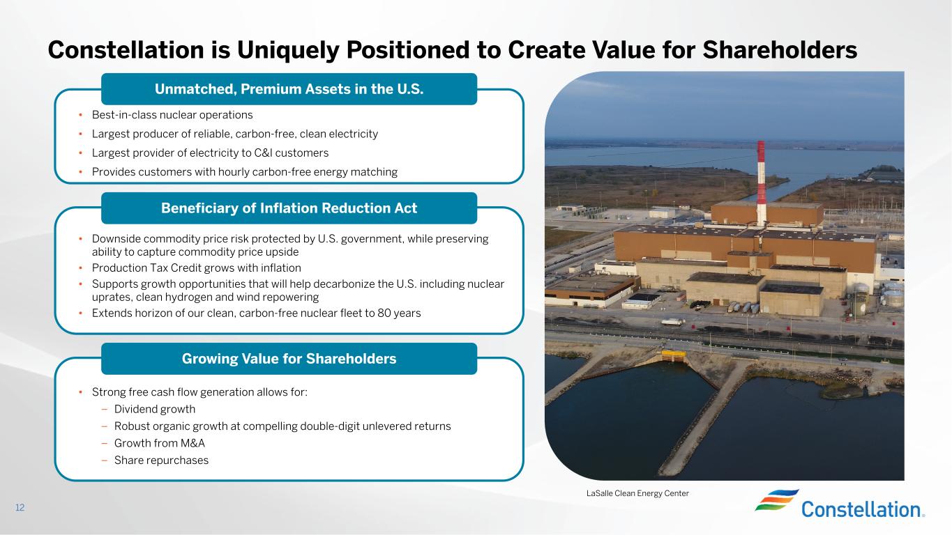 -クリーン水素ハブ賞受賞:当社は、エネルギー省から最大10億ドルの支援を受けることが決まったMachH2水素ハブの主要参加企業となることができ、大変嬉しく思っています。ハブの資金の一部は、イリノイ州のラサール・クリーン・エネルギー・センターに世界最大の原子力クリーン水素製造施設を建設するために使用される。このプロジェクトは、毎年推定33,450トンのクリーン水素を生産し、数千人の高賃金雇用を創出する。この施設の建設費は約9億ドルと見積もられており、MachH2賞の一部がプロジェクト費用を相殺する。