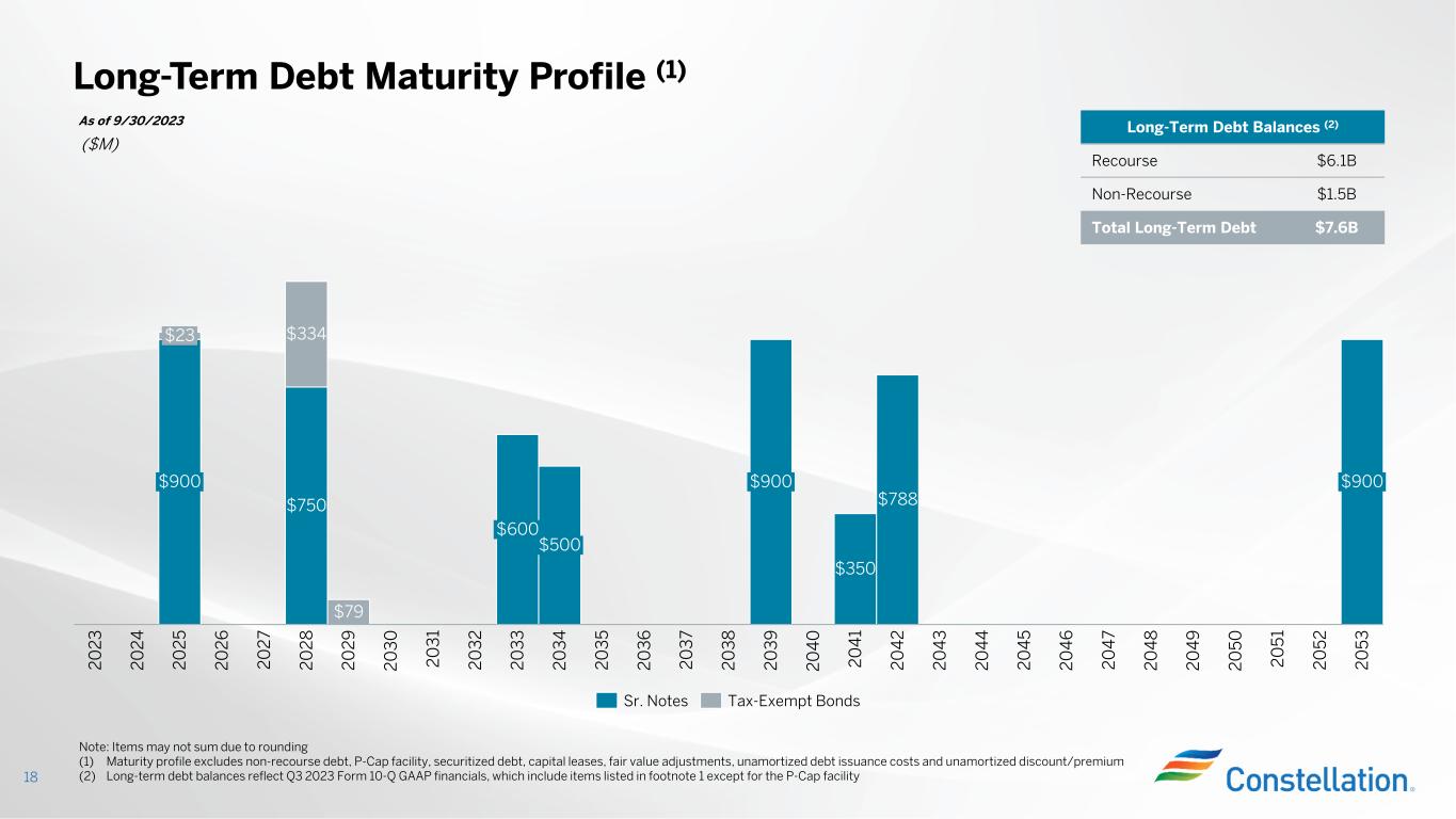 -資本配分の約束を果たす:当社の資本および戦略計画に沿って、当社は2023年11月1日、ヒューストンの南西約90マイルに位置する2,645メガワット、2系列の原子力発電所であるサウス・テキサス・プロジェクト原子力発電所の44%の未分割持分の取得を17億5,000万ドルで完了した。当社はシニアノートを発行し、約14億ドルの純収入を得たが、これは買収資金の一部に充当された。この買収は、当社の既存のクリーンエネルギー事業と補完的であり、戦略的にも合致している。