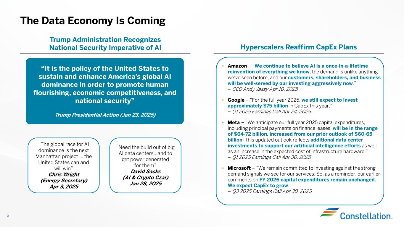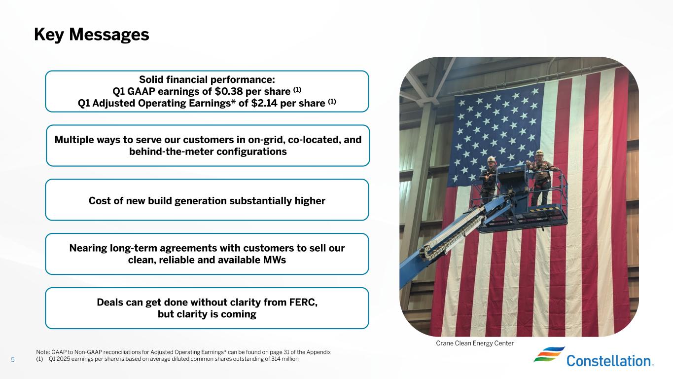 2025年度第1四半期の業績については、本日午前9時(米国東部時間)に予定されている電話会議で説明する予定です。ウェブキャストと関連資料はhttps://investors.constellationenergy.com。