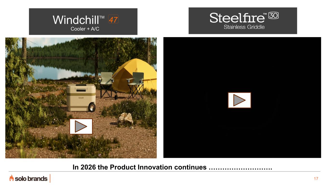 16 S O L O B R A N D S P R O D U C T I N N O V A T I O N New Fall Product Launches Designed to Strengthen Solo Stove’s Innovation Pipeline Q3/Q4 ‘25