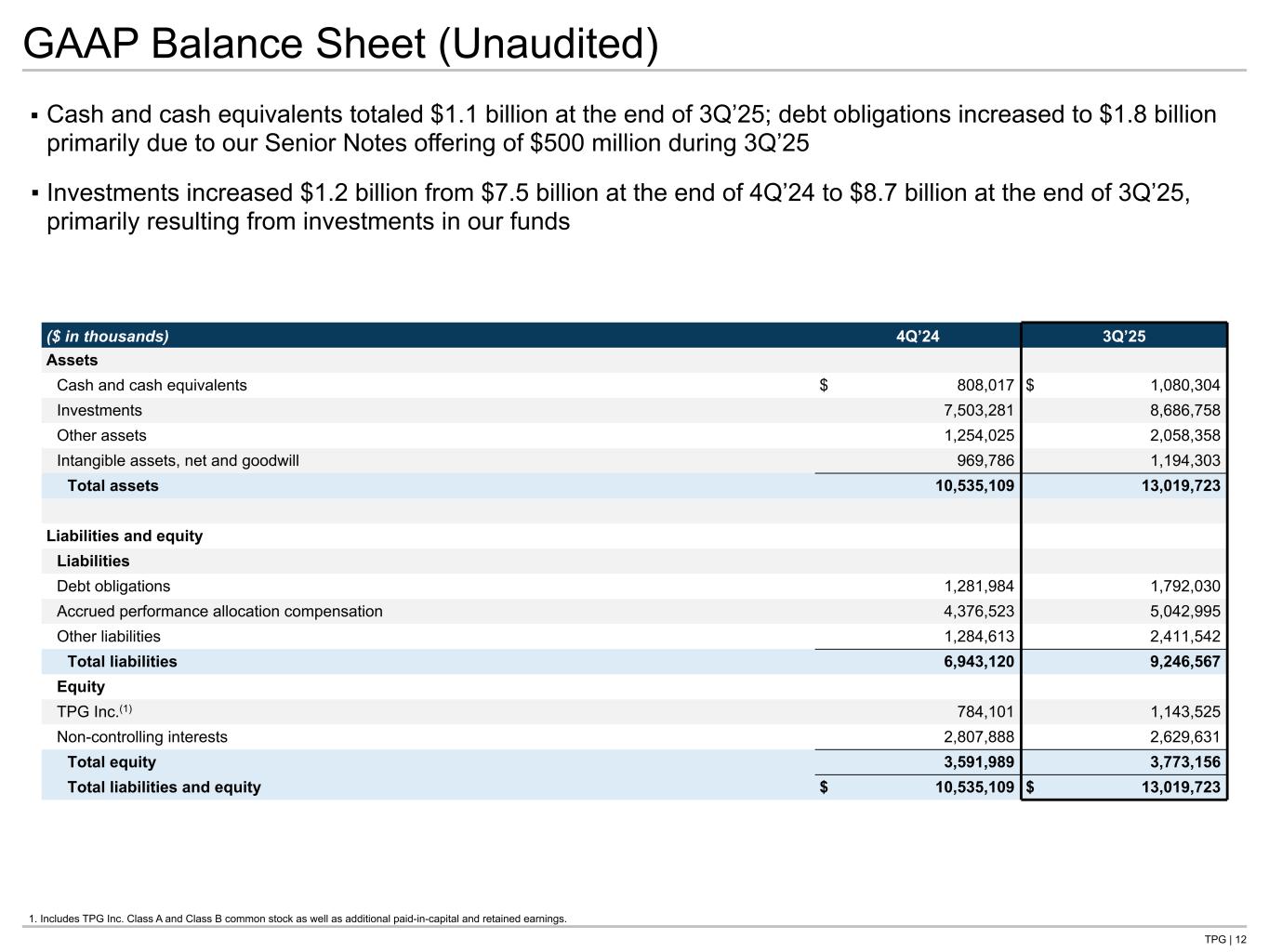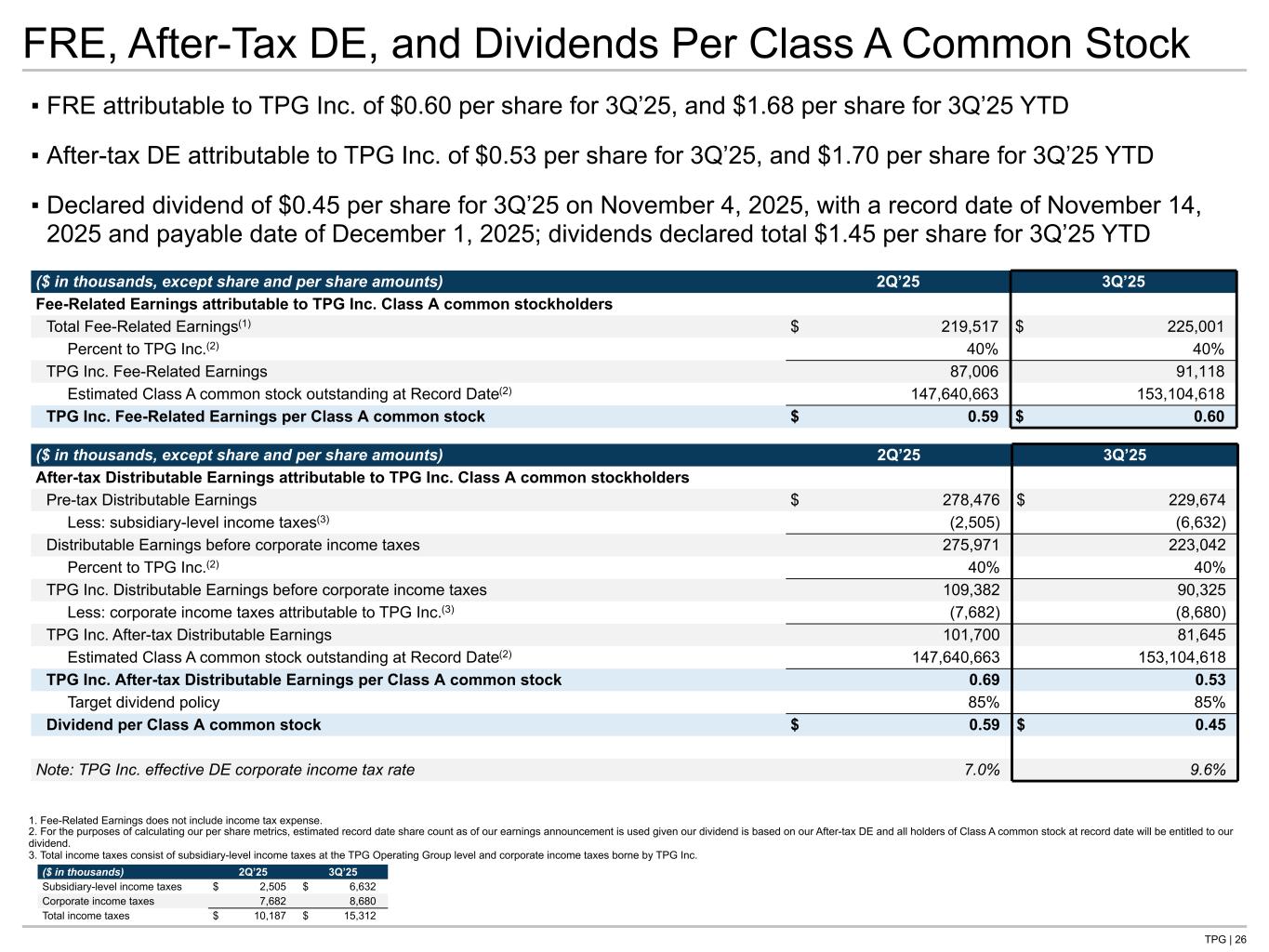 TPG Reports Third Quarter 2025 Financial Results Quarter Ended September 30, 2025
