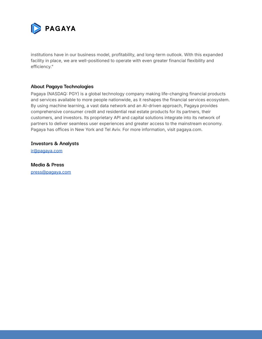 Schedule 5.19 — Security Documents This Credit Agreement is entered into as of October 1, 2025, by and among Pagaya Technologies Ltd., a company organized under the laws of Israel (the “Pagaya Parent”), Pagaya US Holding Company LLC, a Delaware limited liability company (“Pagaya US”), the Guarantors party hereto, the several financial institutions from time to time party to this Agreement, as Lenders, Valley National Bank, as L/C Issuer, and BMO Bank N.A., a national banking association, as Administrative Agent and Swing Line Lender. All capitalized terms used herein without definition shall have the same meanings ascribed thereto in Section 1.1.