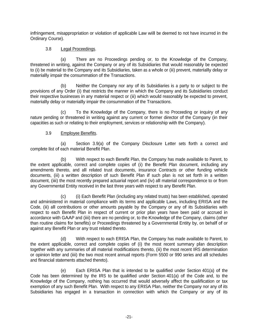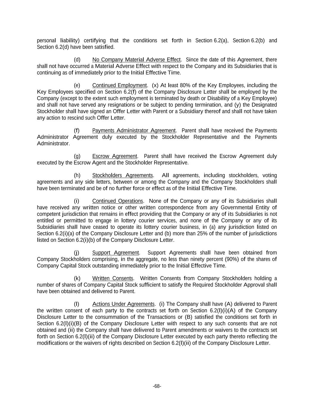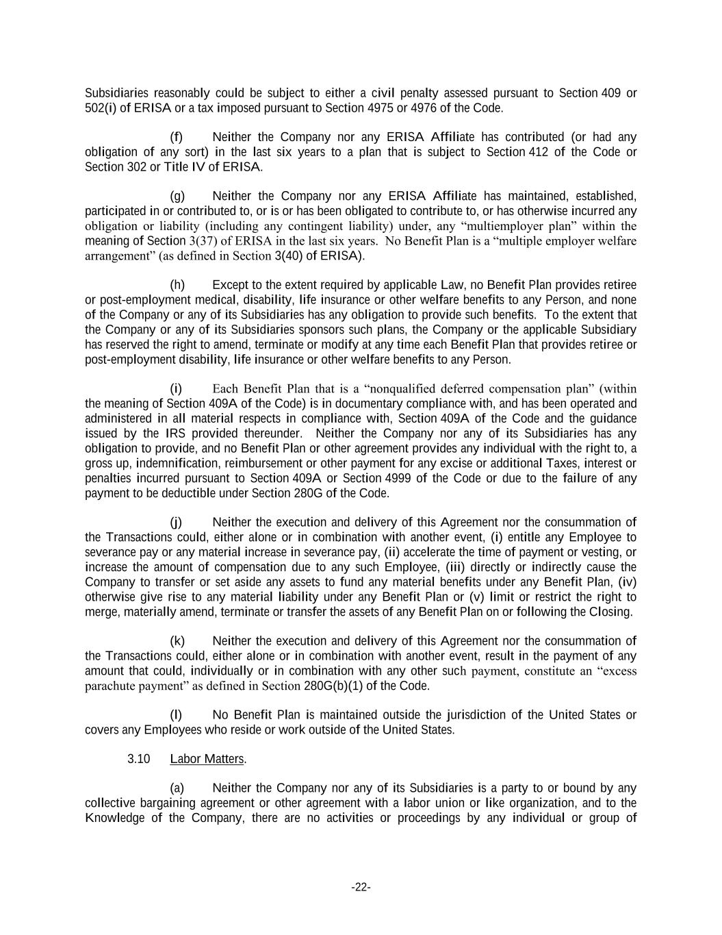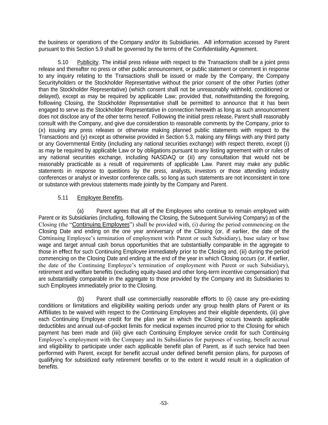 TABLE OF CONTENTS (continued) Page -v- 10.8 Obligations of Parent and of the Company ...................................................................... 85 10.9 Severability ...................................................................................................................... 85 10.10 Interpretation; Construction. ............................................................................................ 86 10.11 Successors and Assigns ................................................................................................... 87 10.12 Fulfillment of Obligations................................................................................................ 87 10.13 Waiver of Conflicts; Privilege ......................................................................................... 87