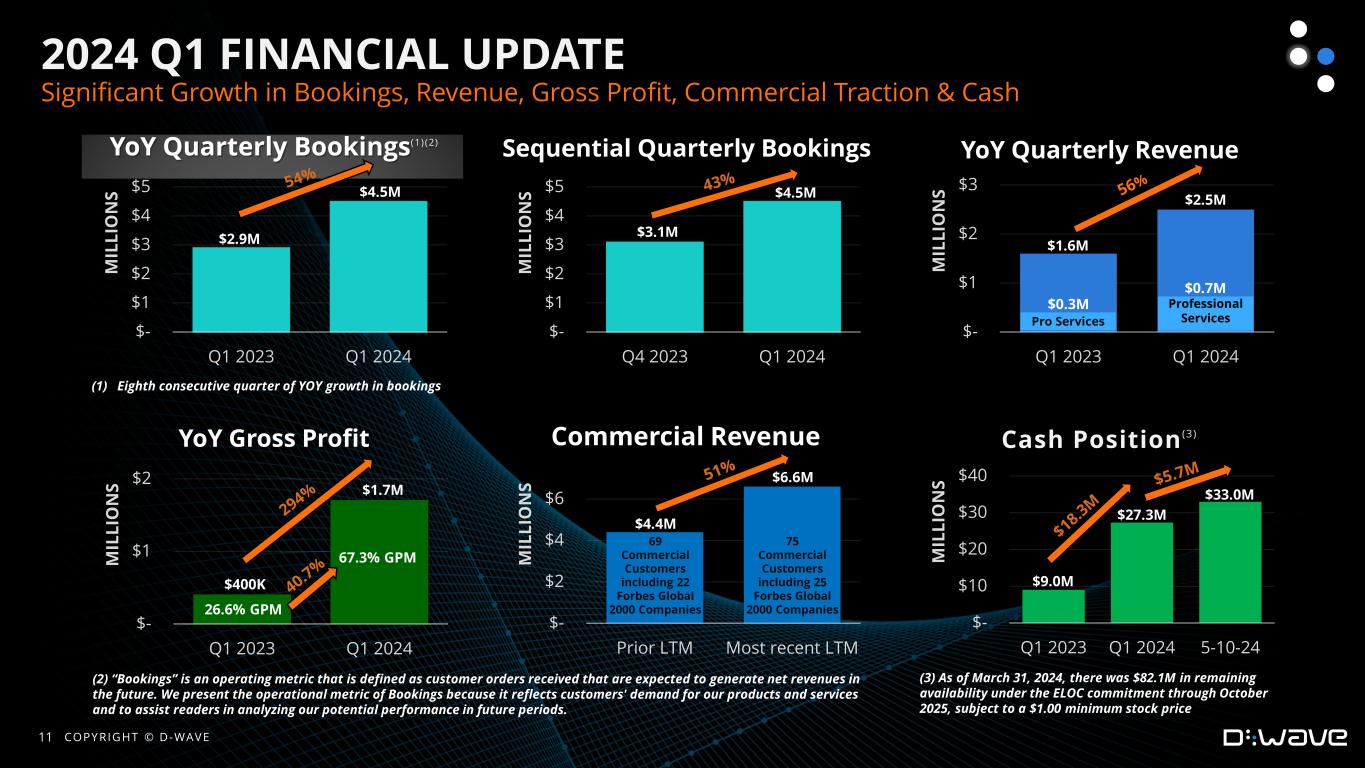 -予約1:2024年度第1四半期の予約件数は450万ドルで、2023年度第1四半期の予約件数290万ドルから160万ドル(54%)増加した。これは、D-ウェーブが8四半期連続で前年同期比で予約件数を伸ばしたことを意味する。