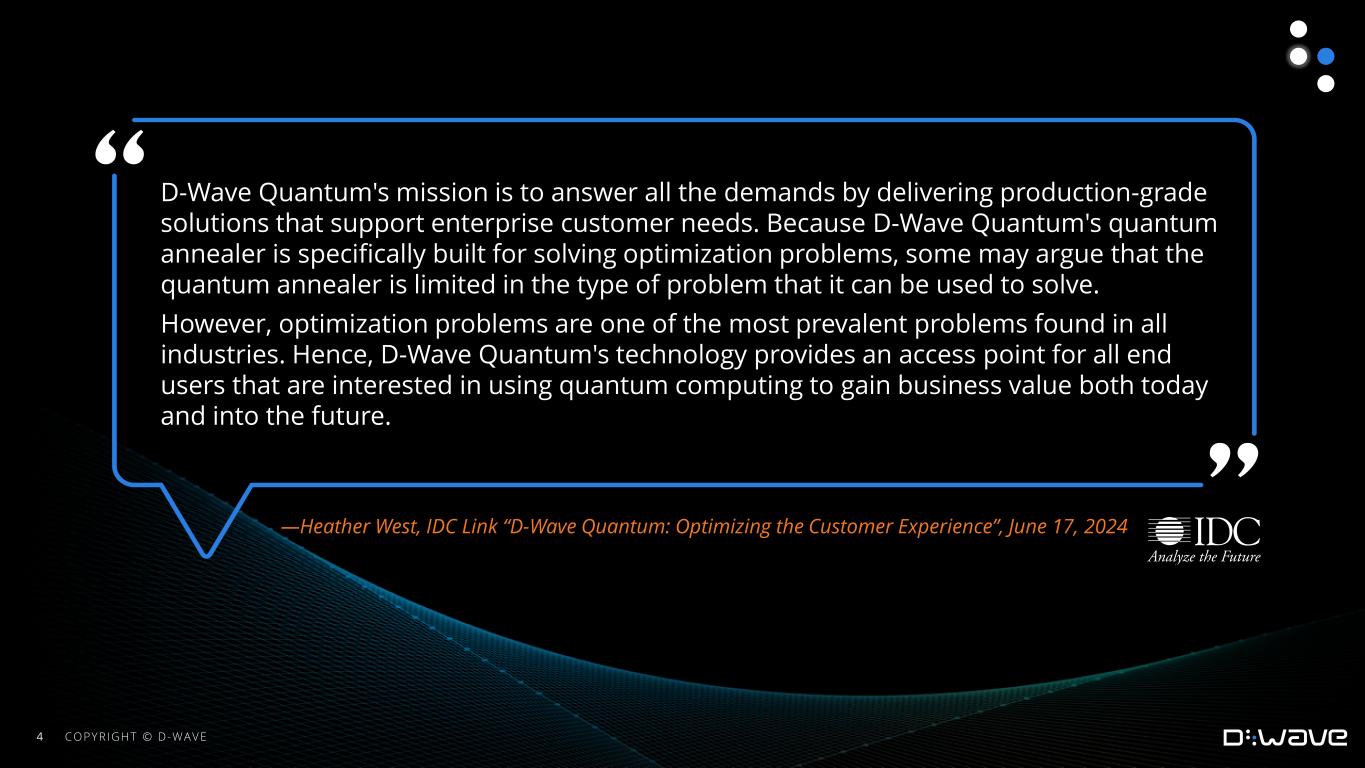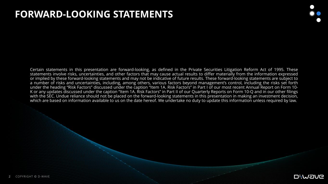 “Our second quarter results show continued traction on all fronts - revenue, bookings, customer acquisition, liquidity and technical advancements,” said Dr. Alan Baratz, CEO of D-Wave. “There is rapidly growing awareness of annealing quantum computing and its ability to deliver business benefits today, and the market is responding. This is further strengthened by our product development activities in hardware (Advantage2 prototype), software (new nonlinear hybrid solver and fast anneal feature), and Quantum Artificial Intelligence. Our momentum as one of the few companies in the world leading the quantum transformation is evident.”