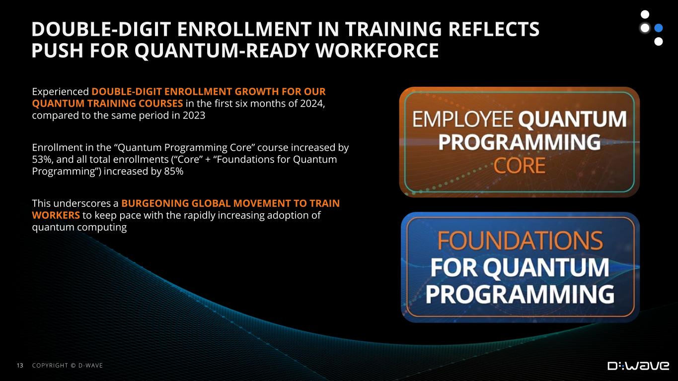 •Announced double-digit enrollment growth for our quantum training courses in the first six months of 2024, compared to the same period in 2023. Enrollment in the “Quantum Programming Core” course increased by 53%, and all total enrollments (“Core” + “Foundations for Quantum Programming”) increased by 85%. This underscores a burgeoning global movement to train workers to keep pace with the rapidly increasing adoption of quantum computing.