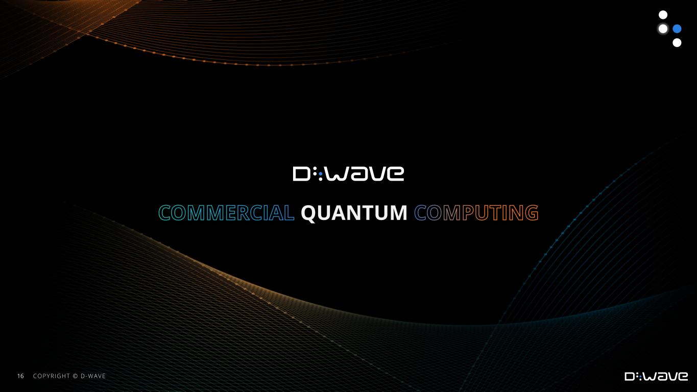 D-Wave is a leader in the development and delivery of quantum computing systems, software, and services, and is the world’s first commercial supplier of quantum computers. Our mission is to unlock the power of quantum computing today to benefit business and society. We do this by delivering customer value with practical quantum applications for problems as diverse as logistics, artificial intelligence, materials sciences, drug discovery, scheduling, cybersecurity, fault detection, and financial modeling. D-Wave’s technology has been used by some of the world’s most advanced organizations, including Mastercard, Deloitte, Davidson Technologies, ArcelorMittal, Siemens Healthineers, Unisys, NEC Corporation, Pattison Food Group Ltd., DENSO, Lockheed Martin, Forschungszentrum Jülich, University of Southern California, and Los Alamos National Laboratory.