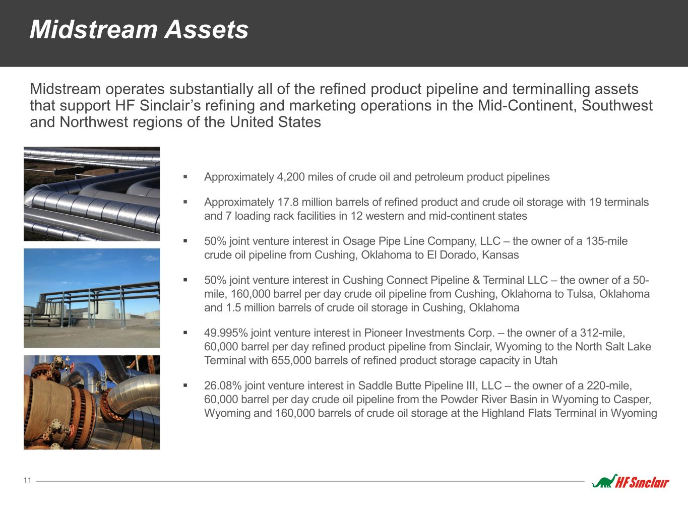 10 Marketing Footprint Broad Reach of Branded Retail Sites with Opportunity for Expansion within Current Asset Footprint1 1. Reflective of independent branded and licensed sites, which are not owned or operated by HF Sinclair Corporation. As of June 30, 2025.
