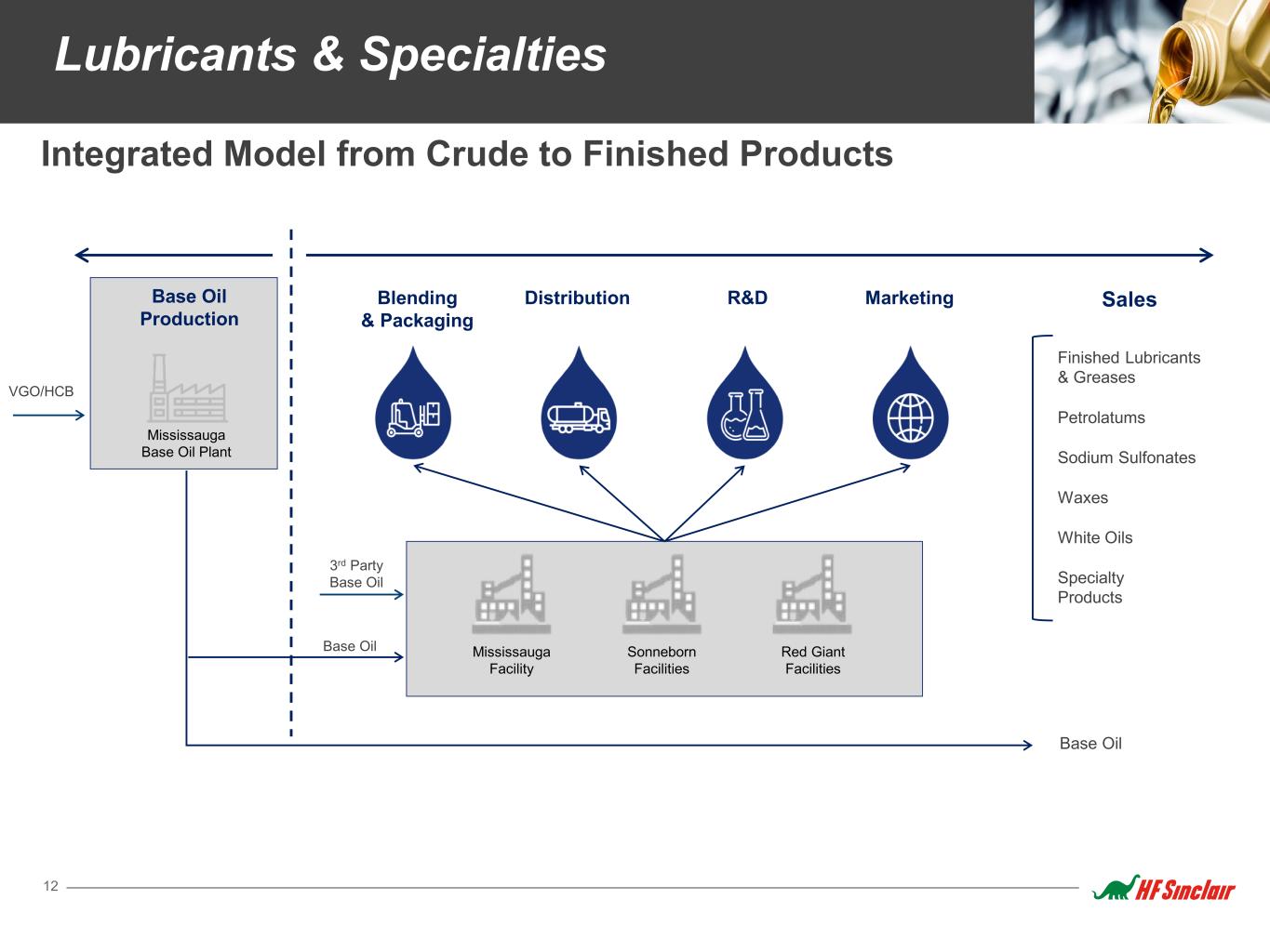 12 Lubricants & Specialties Integrated Model from Crude to Finished Products Mississauga Base Oil Plant Base Oil Production Blending & Packaging MarketingDistribution R&D VGO/HCB Base Oil White Oils Specialty Products Waxes Finished Lubricants & Greases Sales Base Oil Petrolatums Sodium Sulfonates 3rd Party Base Oil Red Giant Facilities Sonneborn Facilities Mississauga Facility
