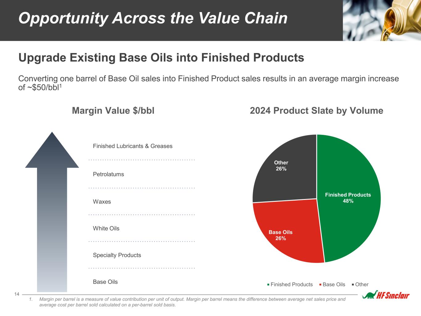 14 Opportunity Across the Value Chain Upgrade Existing Base Oils into Finished Products Converting one barrel of Base Oil sales into Finished Product sales results in an average margin increase of ~$50/bbl1 2024 Product Slate by Volume Finished Lubricants & Greases Petrolatums Waxes White Oils Specialty Products Base Oils Margin Value $/bbl 1. Margin per barrel is a measure of value contribution per unit of output. Margin per barrel means the difference between average net sales price and average cost per barrel sold calculated on a per-barrel sold basis. Finished Products 48% Base Oils 26% Other 26% Finished Products Base Oils Other