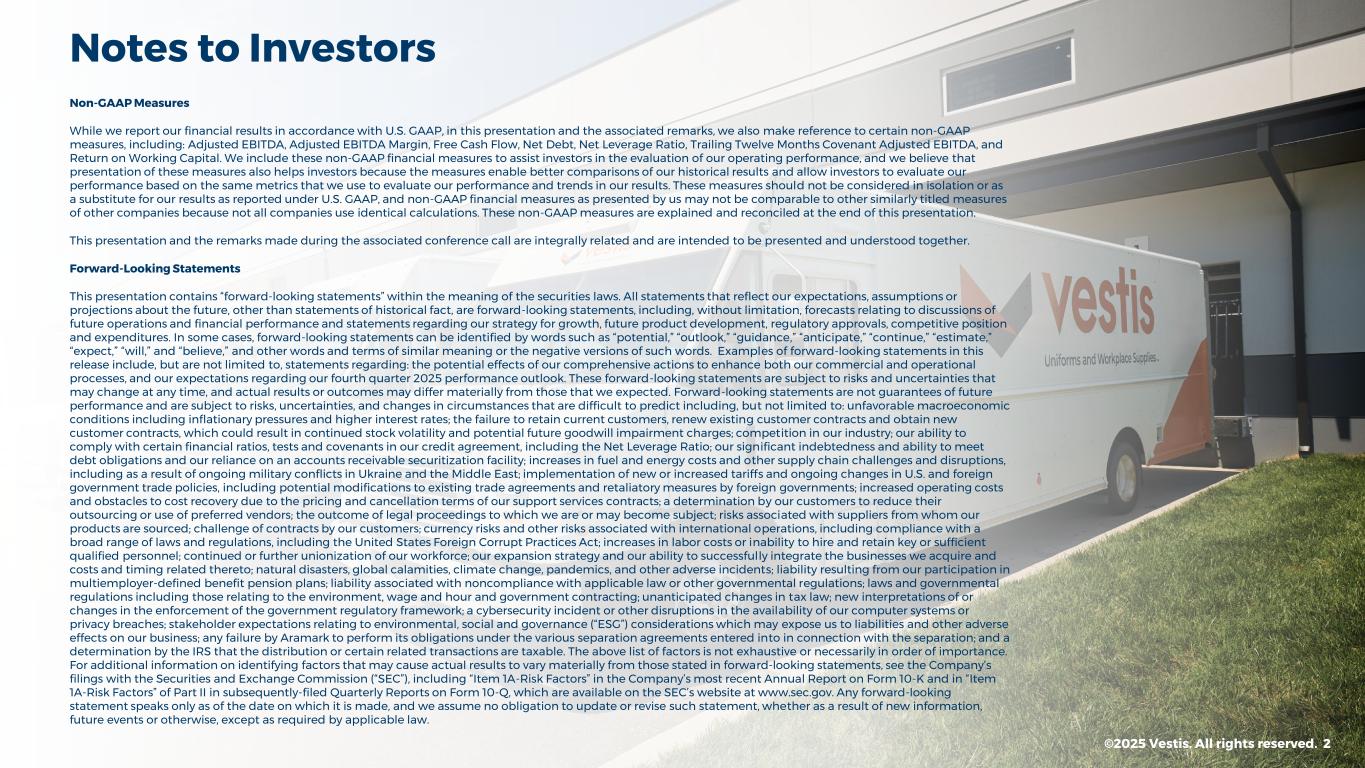 カンファレンス・コールのライブ・ウェブキャストおよび付随する投資家向けプレゼンテーションへのアクセスは、当社ウェブサイトの投資家向けセクション(www.vestis.com)をご覧ください。