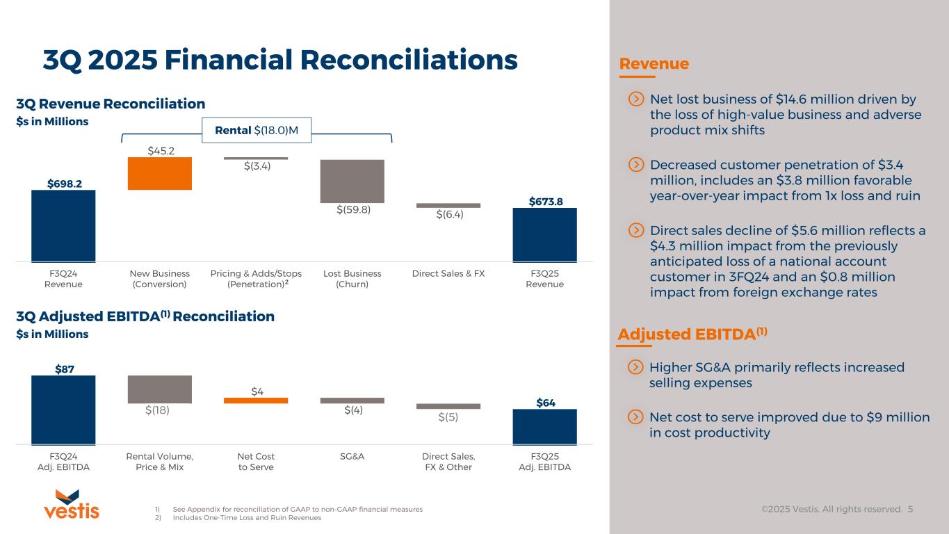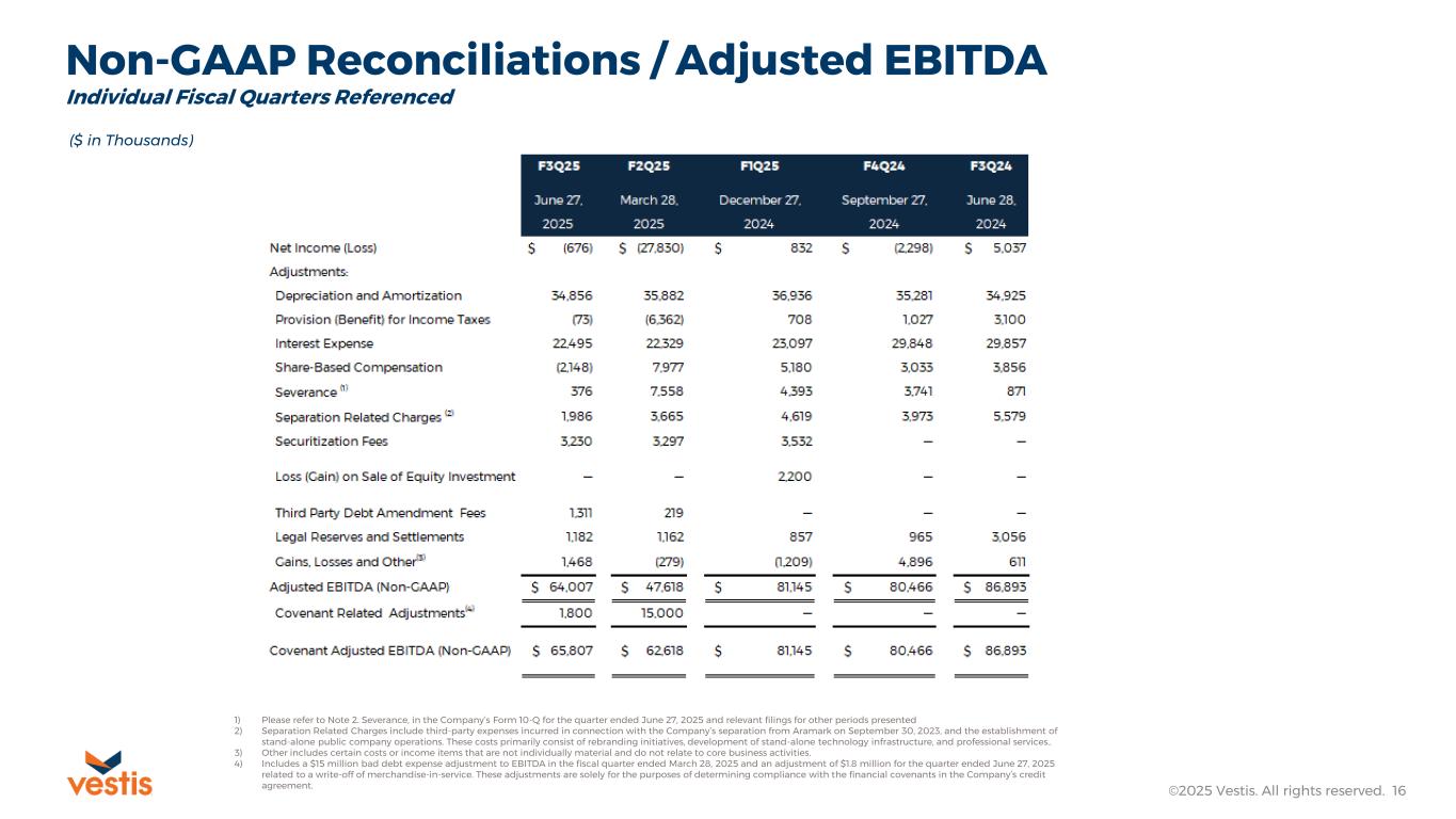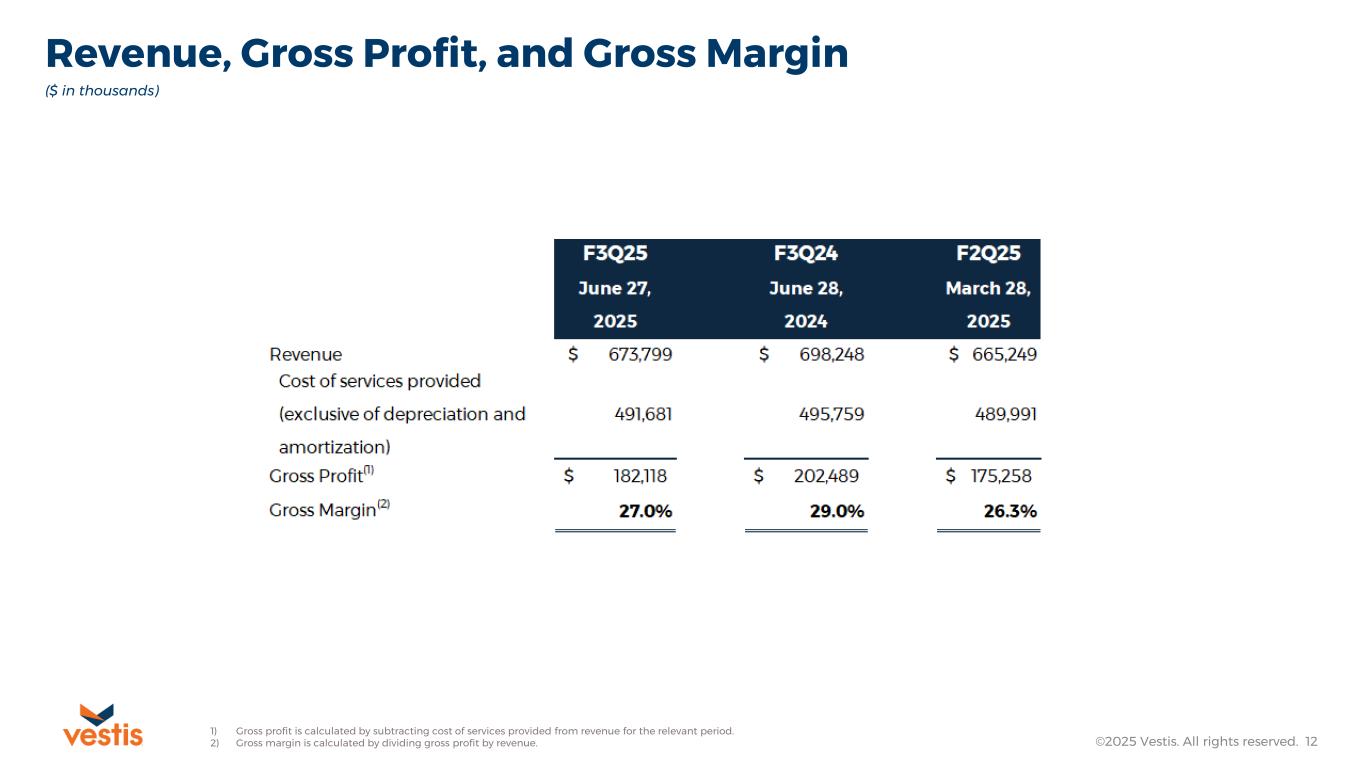 ジョージア州アトランタ、2025年8月5日 - ユニフォームと職場用品の大手プロバイダーであるヴェスティス・コーポレーション(NYSE: VSTS)は本日、2025年6月27日締めの第3四半期の業績を発表した。