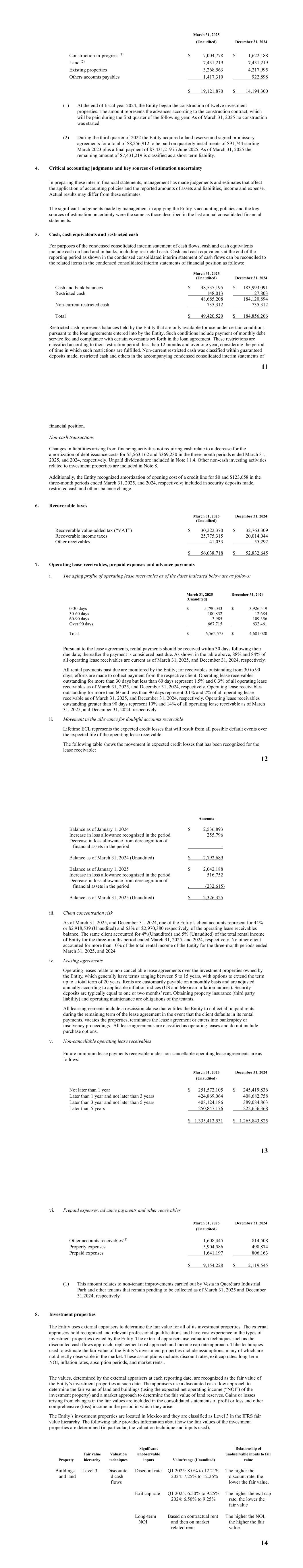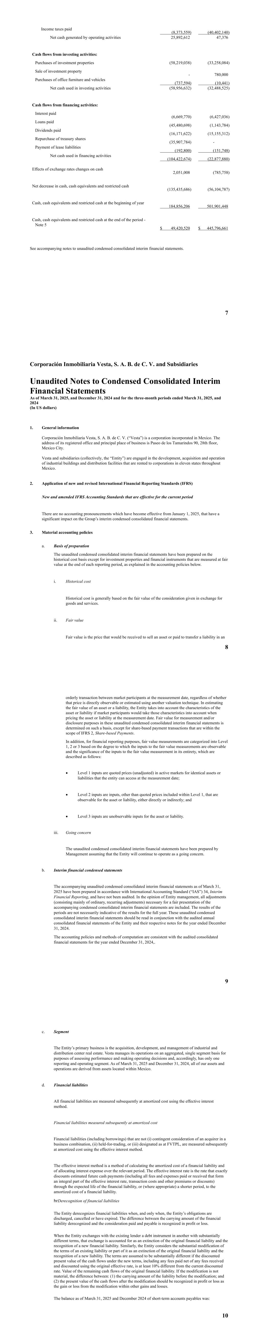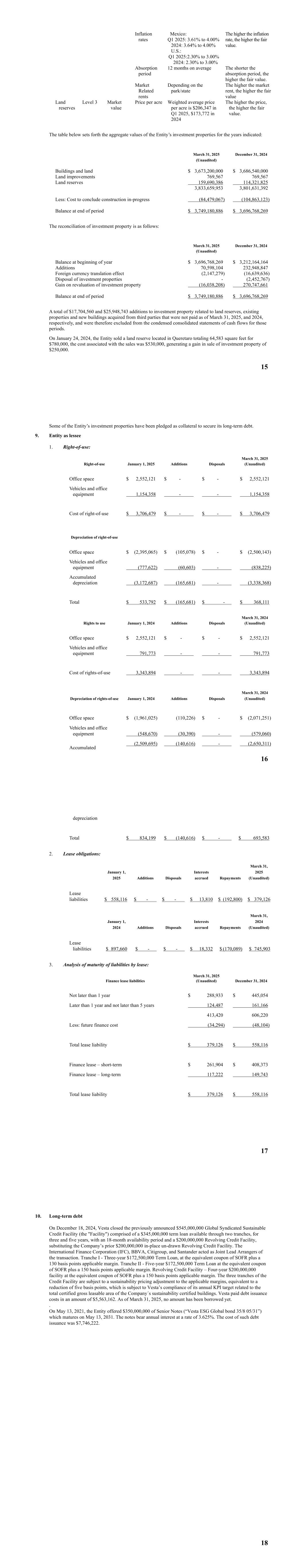 •During the first quarter, the Company acquired 18.7 acres of land in Mexico City representing 367 thousand sf in GLA. In April 2025, subsequent to the quarter´s end, Vesta acquired 20.2 acres of land in Monterrey representing 449 thousand sf in buildable area for future construction. Both land acquisitions represent highly desirable urban infill locations which address critical last-mile logistics and e-commerce demand. These acquisitions represent another important milestone for the Company, further expanding its strategic land bank, aligned with Vesta's Route 2030 plan.