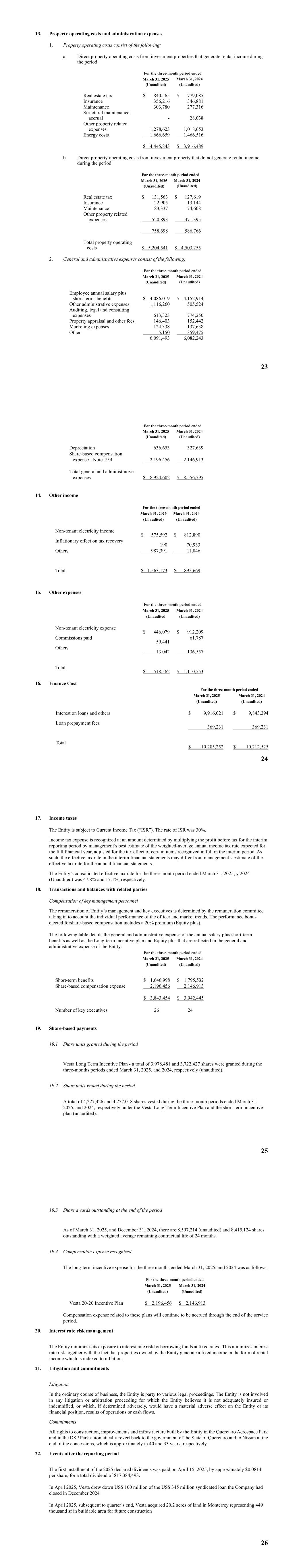 •At Vesta's General Shareholders' Meeting on March 19, 2025, Vesta shareholders approved a share buyback plan in the amount of US$ 150 million. Vesta´s share repurchase program reached US$ 36.4 million, or 15.5 million shares, for the first quarter 2025. All shares acquired as part of the Company's buyback program will be subsequently canceled, aligned with Vesta's focus on consistently allocating capital to ensure the most significant shareholder return.