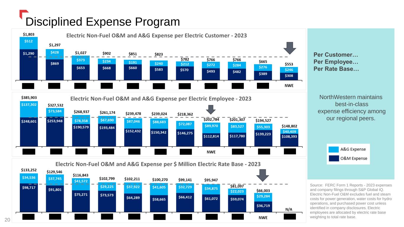 20 Disciplined Expense Program Source: FERC Form 1 Reports - 2023 expenses and company filings through S&P Global IQ. Electric Non-Fuel O&M excludes fuel and steam costs for power generation, water costs for hydro operations, and purchased power cost unless identified in company disclosures. Electric employees are allocated by electric rate base weighting to total rate base. Per Customer… Per Employee… Per Rate Base… NorthWestern maintains best-in-class expense efficiency among our regional peers.