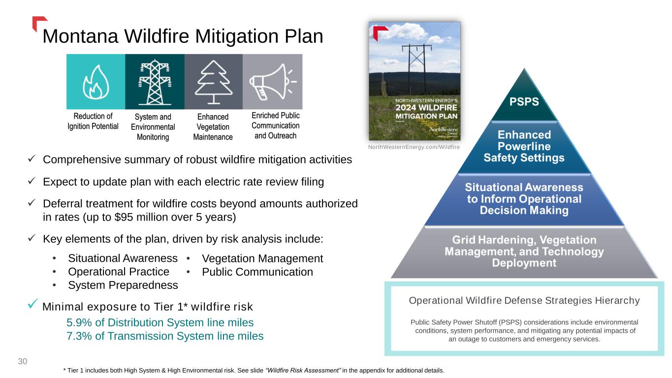 Colstrip Facility Ownership Overview 29 In January 2026, we will own 55% of Colstrip Units 3 &4. This allows us to guide investments in operation and maintenance in providing on- demand, 24/7 cost-effective generation for our Montana customers until a viable equivalent, carbon-free energy resource is available. 55%