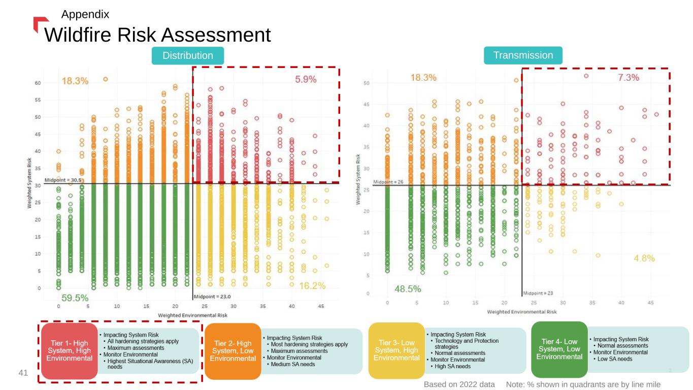 Wildfire Risk Assessment Distribution Transmission Based on 2022 data Note: % shown in quadrants are by line mile Appendix 41