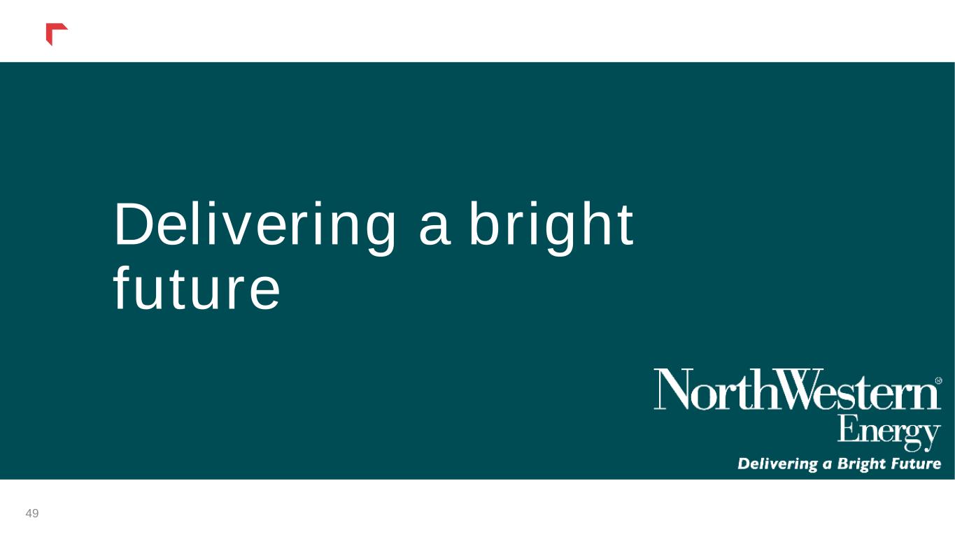 Non-GAAP Financial Measures This presentation includes financial information prepared in accordance with GAAP, as well as other financial measures, such as Utility Margin, Adjusted Non-GAAP pretax income, Adjusted Non-GAAP net income and Adjusted Non-GAAP Diluted EPS that are considered “non-GAAP financial measures.” Generally, a non-GAAP financial measure is a numerical measure of a company’s financial performance, financial position or cash flows that excludes (or includes) amounts that are included in (or excluded from) the most directly comparable measure calculated and presented in accordance with GAAP. We define Utility Margin as Operating Revenues less fuel, purchased supply and direct transmission expense (exclusive of depreciation and depletion) as presented in our Consolidated Statements of Income. This measure differs from the GAAP definition of Gross Margin due to the exclusion of Operating and maintenance, Property and other taxes, and Depreciation and depletion expenses, which are presented separately in our Consolidated Statements of Income. A reconciliation of Utility Margin to Gross Margin, the most directly comparable GAAP measure, is included in this presentation. Management believes that Utility Margin provides a useful measure for investors and other financial statement users to analyze our financial performance in that it excludes the effect on total revenues caused by volatility in energy costs and associated regulatory mechanisms. This information is intended to enhance an investor's overall understanding of results. Under our various state regulatory mechanisms, as detailed below, our supply costs are generally collected from customers. In addition, Utility Margin is used by us to determine whether we are collecting the appropriate amount of energy costs from customers to allow recovery of operating costs, as well as to analyze how changes in loads (due to weather, economic or other conditions), rates and other factors impact our results of operations. Our Utility Margin measure may not be comparable to that of other companies' presentations or more useful than the GAAP information provided elsewhere in this report. Management also believes the presentation of Adjusted Non-GAAP pre-tax income, Adjusted Non-GAAP net income and Adjusted Non-GAAP Diluted EPS is more representative of normal earnings than GAAP pre-tax income, net income and EPS due to the exclusion (or inclusion) of certain impacts that are not reflective of ongoing earnings. The presentation of these non-GAAP measures is intended to supplement investors' understanding of our financial performance and not to replace other GAAP measures as an indicator of actual operating performance. Our measures may not be comparable to other companies' similarly titled measures. 48 Appendix