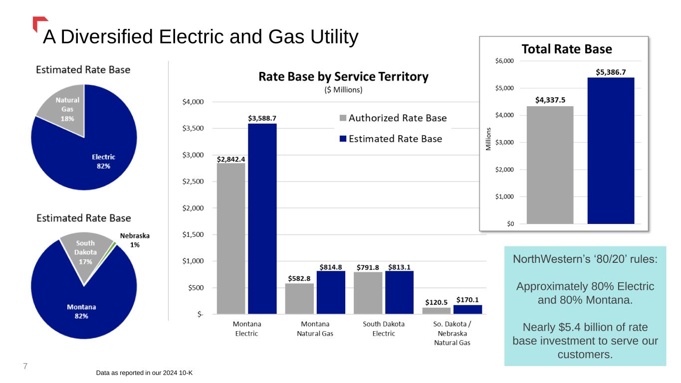 9%-11% Total Growth >11% Total Growth Incremental Opportunities: > 6% EPS Growth ~5% Dividend Yield Base Capital Plan: 4%-6% EPS Growth ✓ Data centers & new large- load opportunities ✓ FERC Regional Transmission ✓ Incremental generating capacity (subject to successful resource procurement bids) $2.74 billion of highly executable and low-risk capital investment forecasted over the next five years. This investment is expected to drive annualized earnings and rate base growth of approximately 4% - 6%. See slide titled “Strong Growth Outlook” for additional information. + The NorthWestern Value Proposition + 6 = = 2025-2029 Capital Investment ($ Millions)