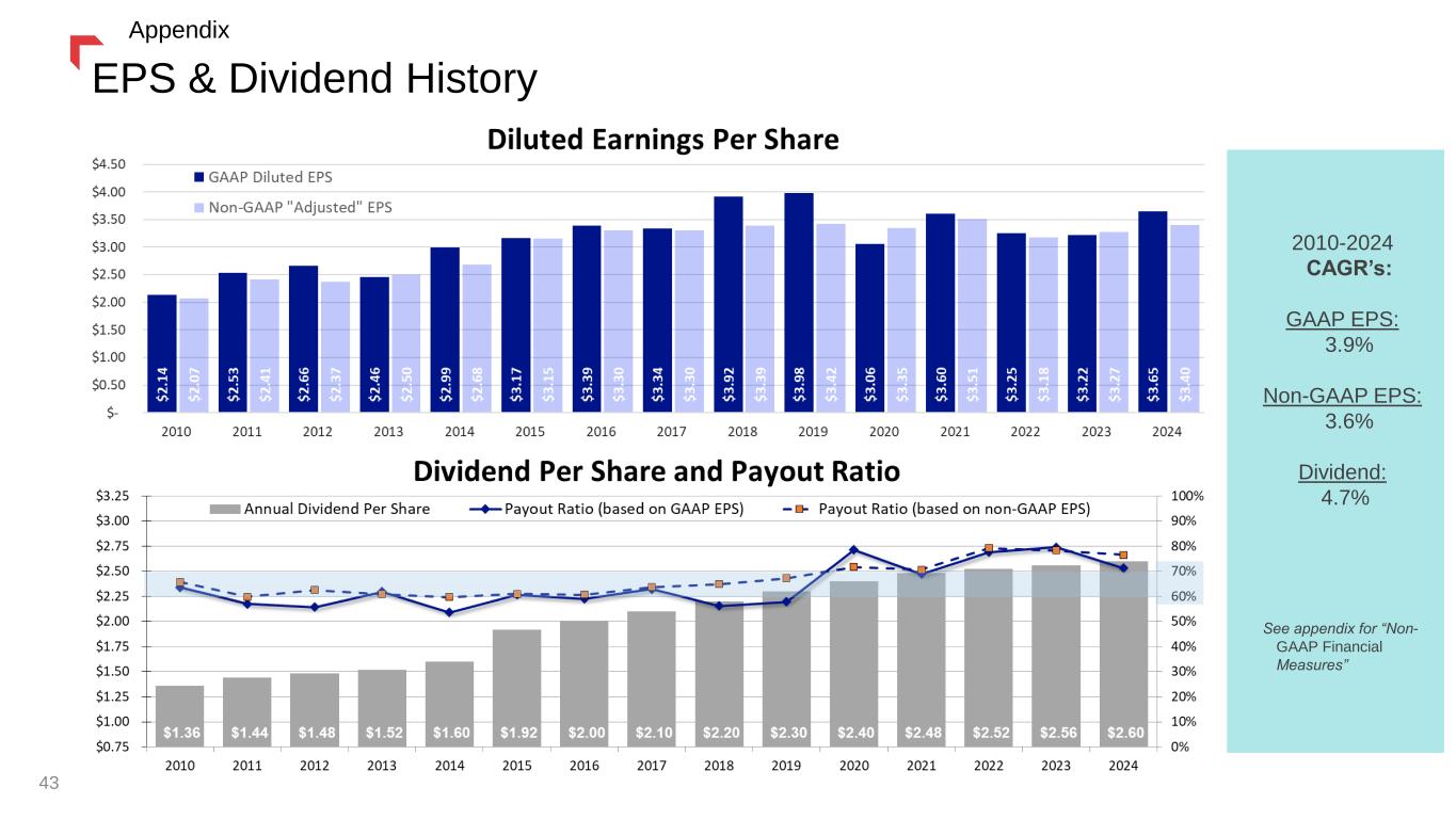EPS & Dividend History 43 2010-2024 CAGR’s: GAAP EPS: 3.9% Non-GAAP EPS: 3.6% Dividend: 4.7% See appendix for “Non- GAAP Financial Measures” Appendix